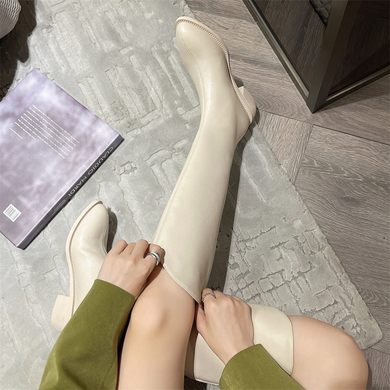 真皮~内增高粗跟骑士靴女秋冬西部靴高筒复古显瘦褶皱堆堆靴长靴