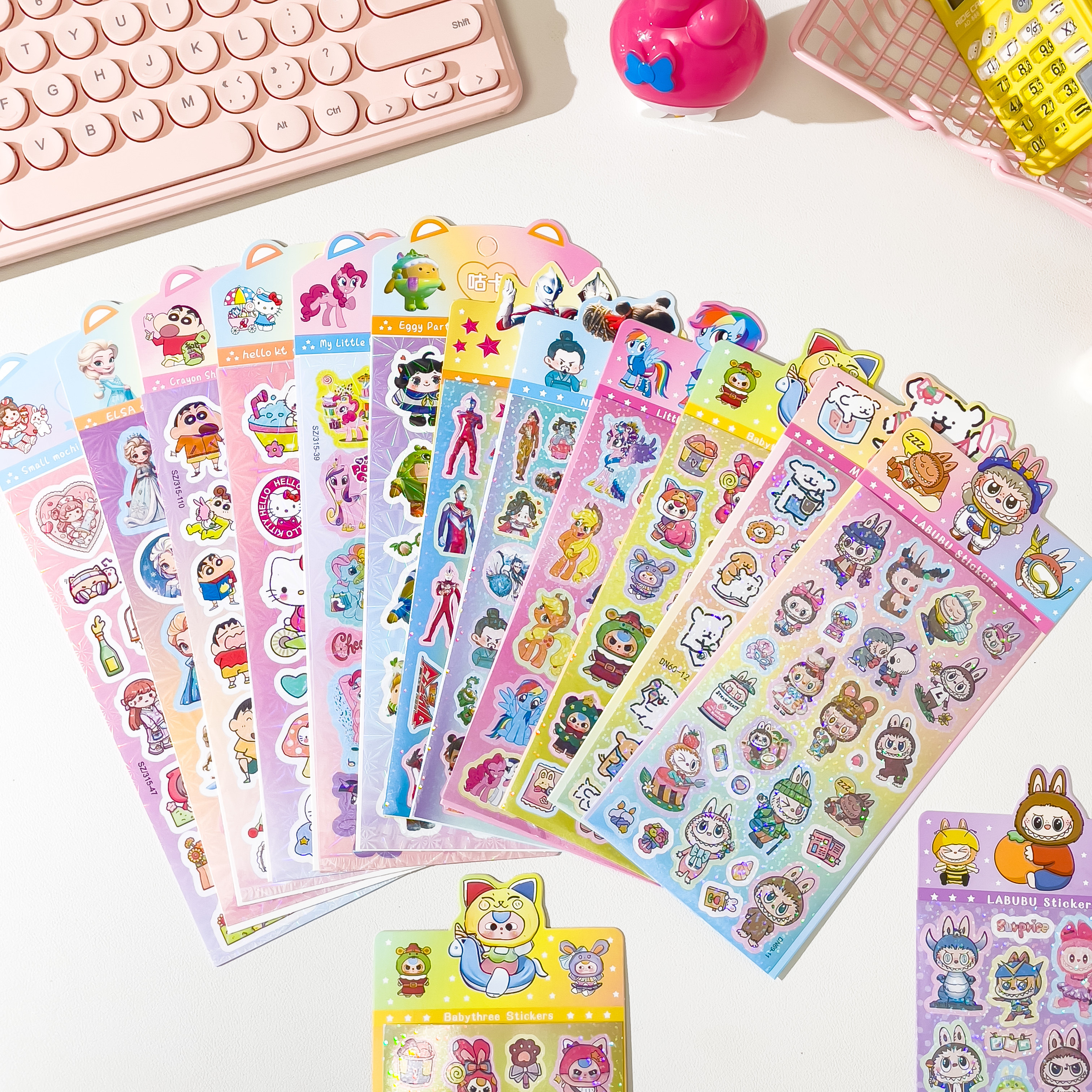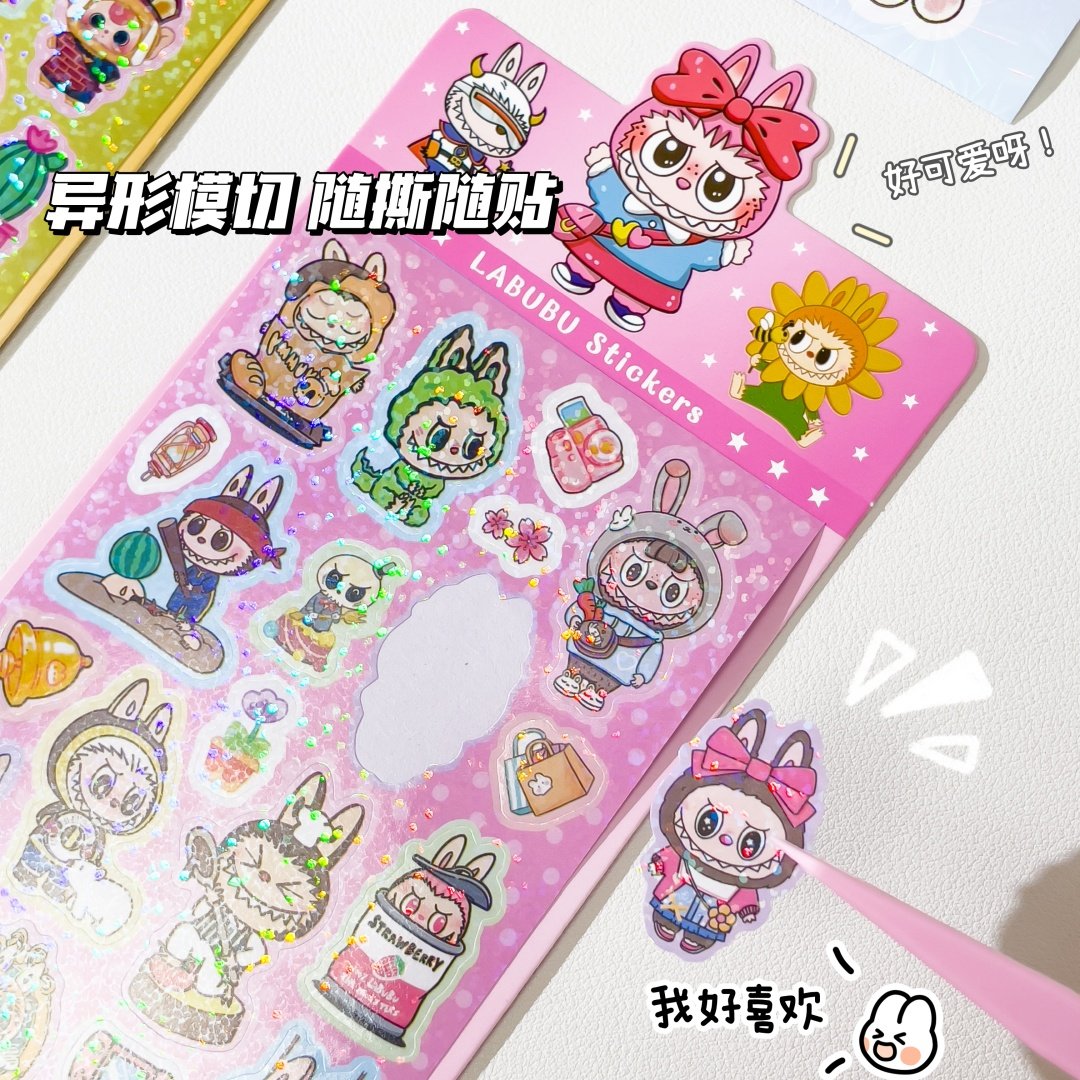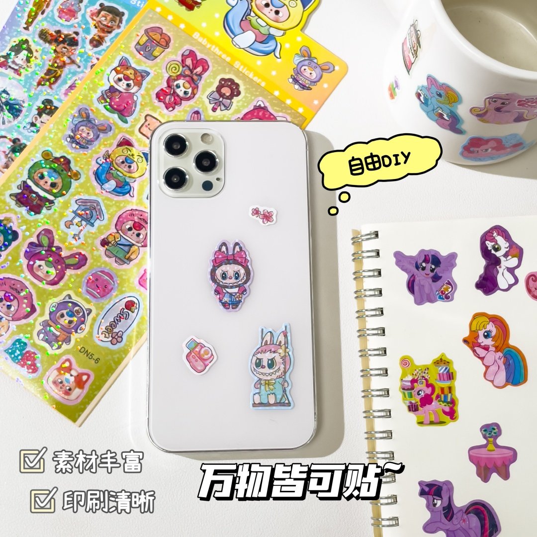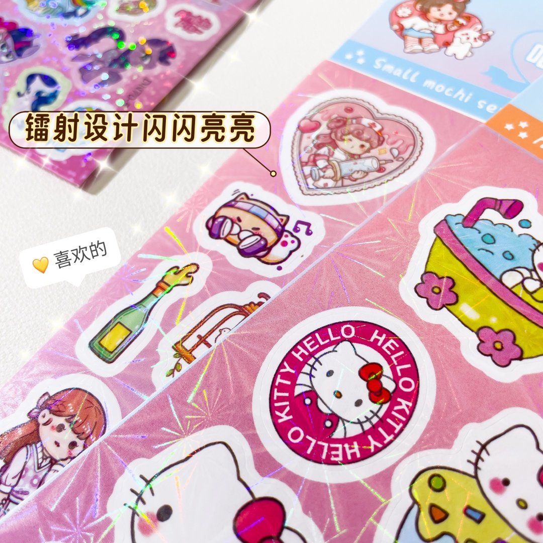 2张镭射手帐覆膜贴纸卡通DIY免裁剪咕卡贴画装饰素材粘贴画可爱贴