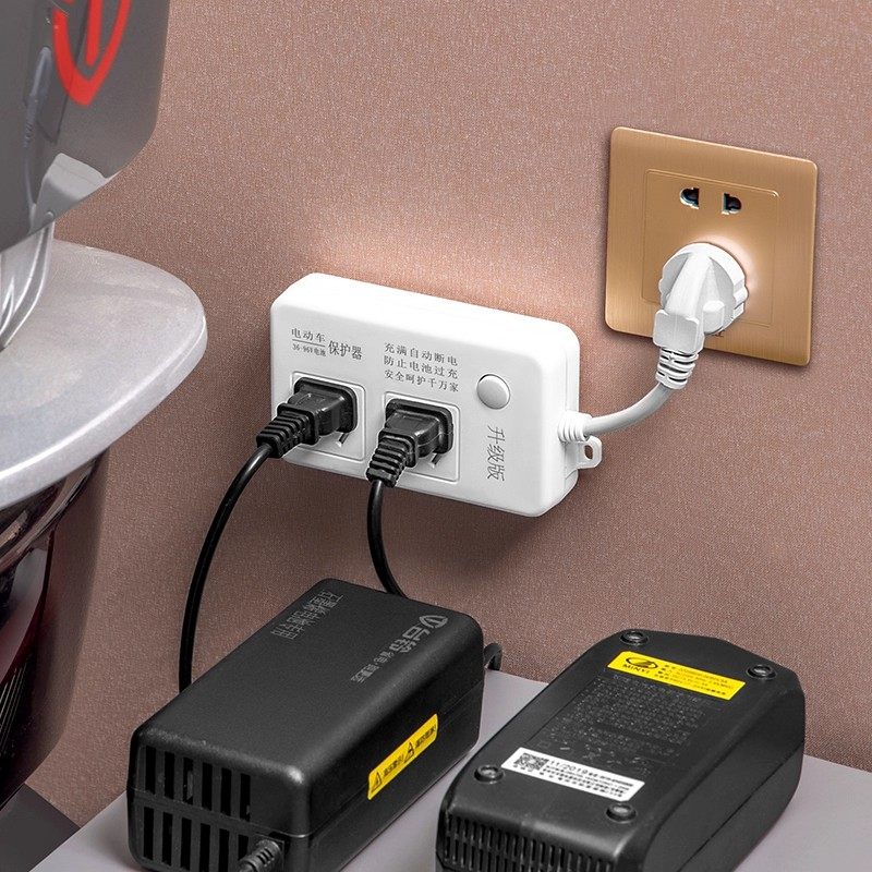自动断电电瓶车防过充智能充电线电动车充电保护器加长线10米插座延长线插排智能定时器保护电瓶短头插座