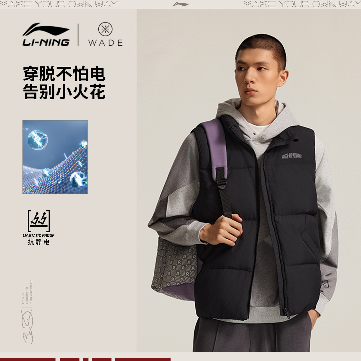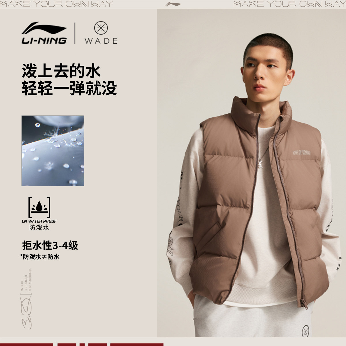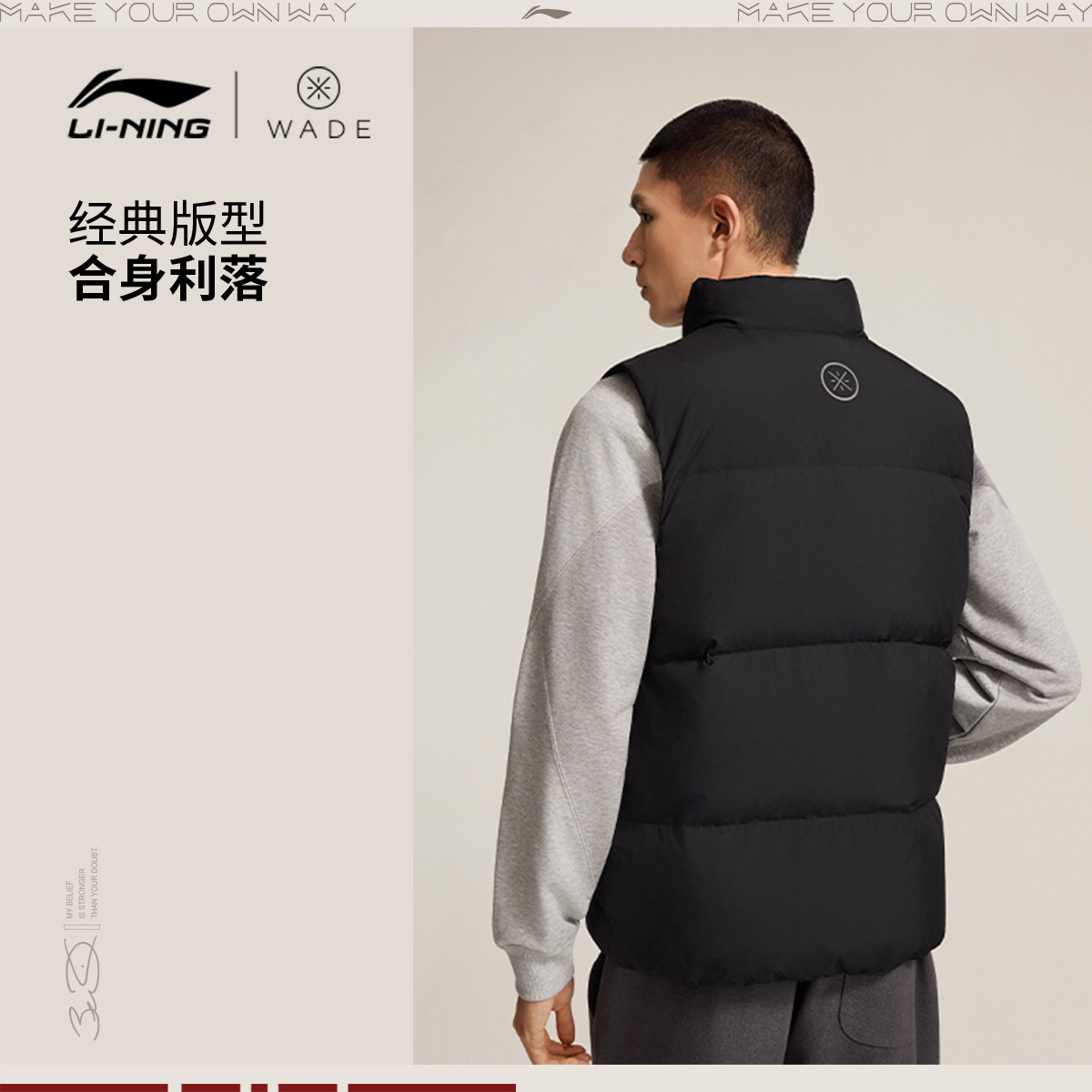 李宁羽绒马甲男士官方新款韦德系列防泼水冬季鹅绒运动服