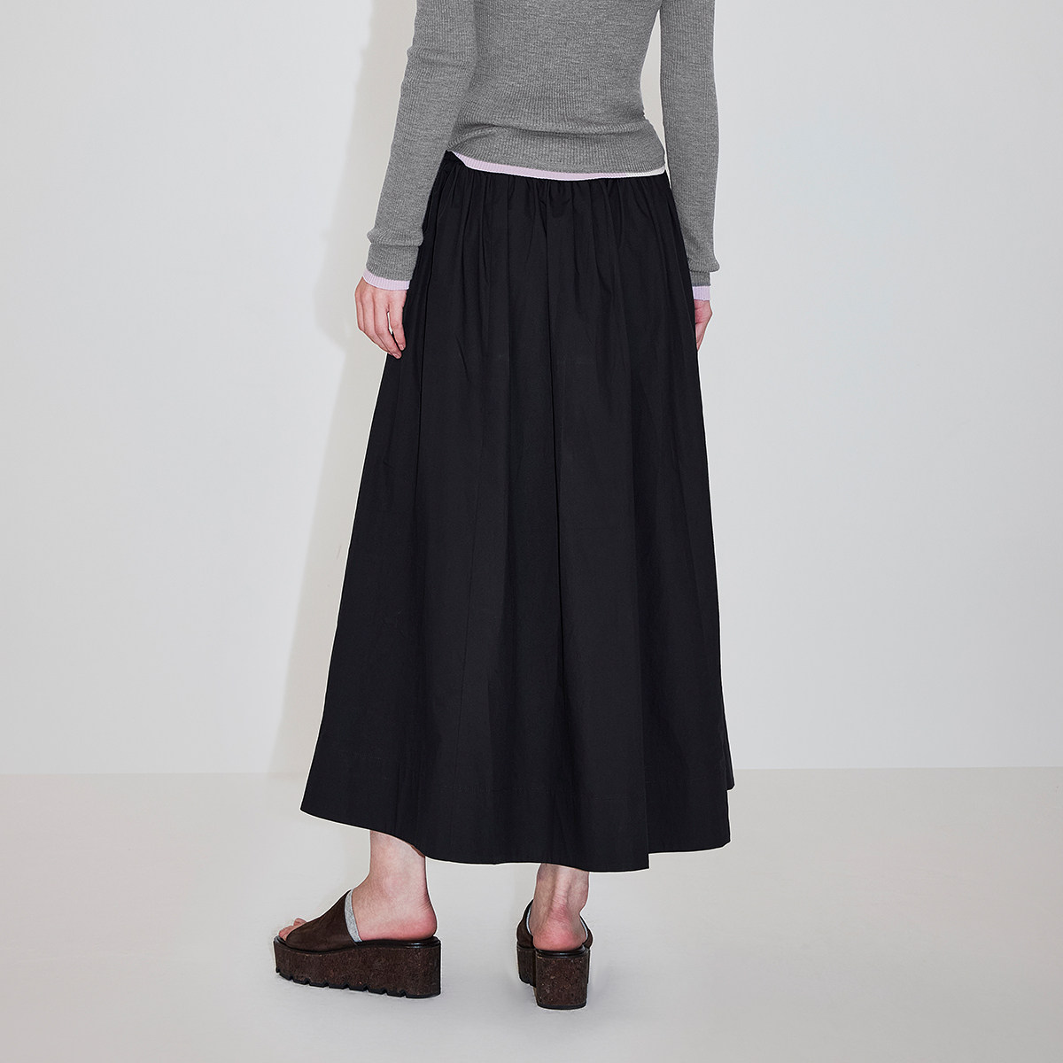 她池松紧腰百褶裙2025秋装新款女装时尚简约中长款A字高腰半身裙