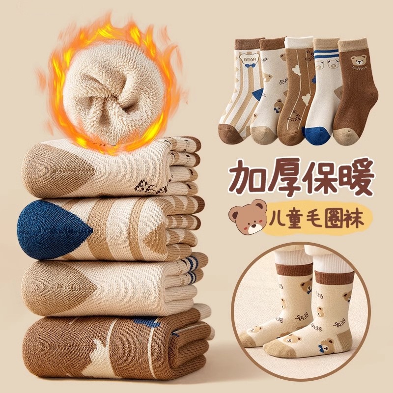 儿童袜子男童秋冬款男宝宝中筒袜加厚加绒大童毛圈袜女孩保暖长袜