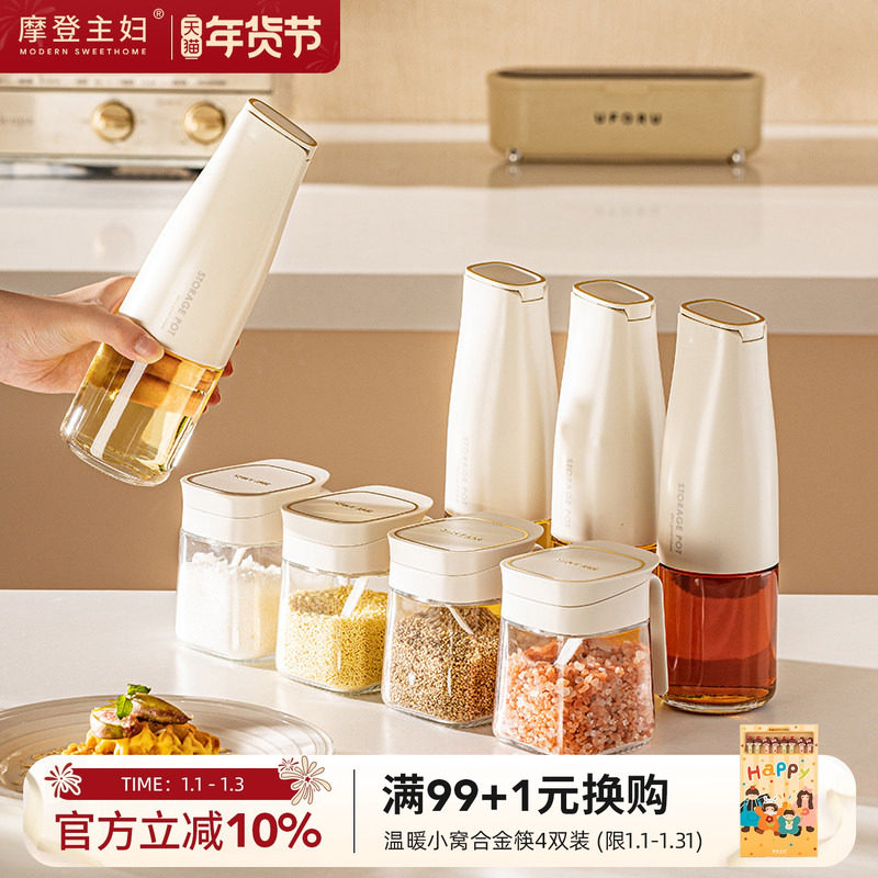 摩登主妇油壶调料罐组合套装厨房家用酱油醋分装瓶不挂油调味瓶罐
