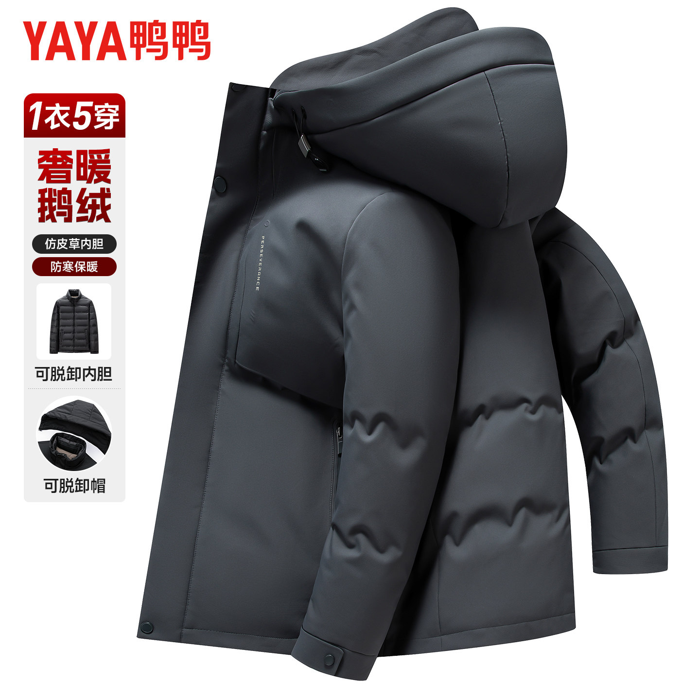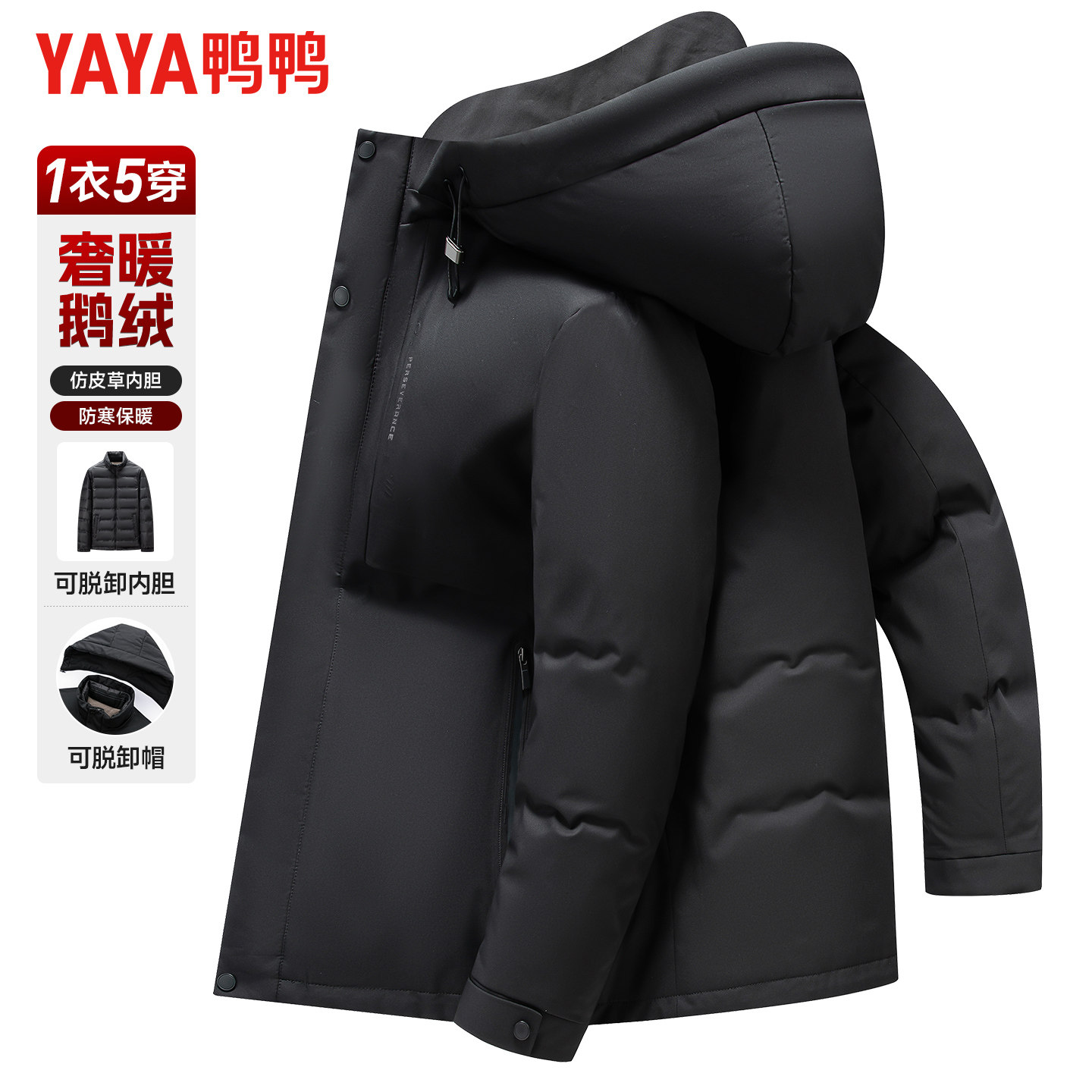【鹅绒】鸭鸭羽绒服男士冬季加厚可脱卸内胆中老年爸爸装保暖外套