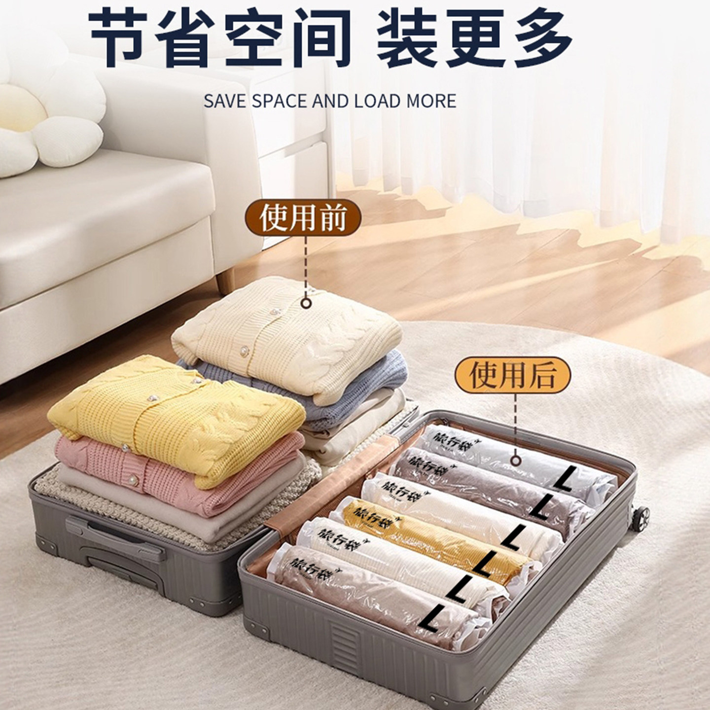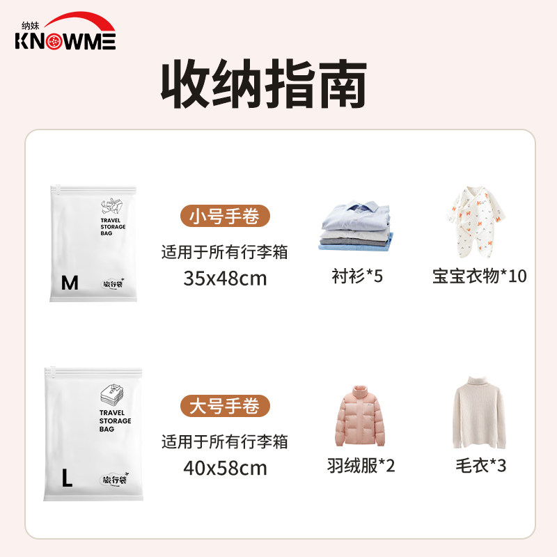 旅行真空压缩袋专用免抽气手卷密封收纳衣服衣物羽绒服袋子立体