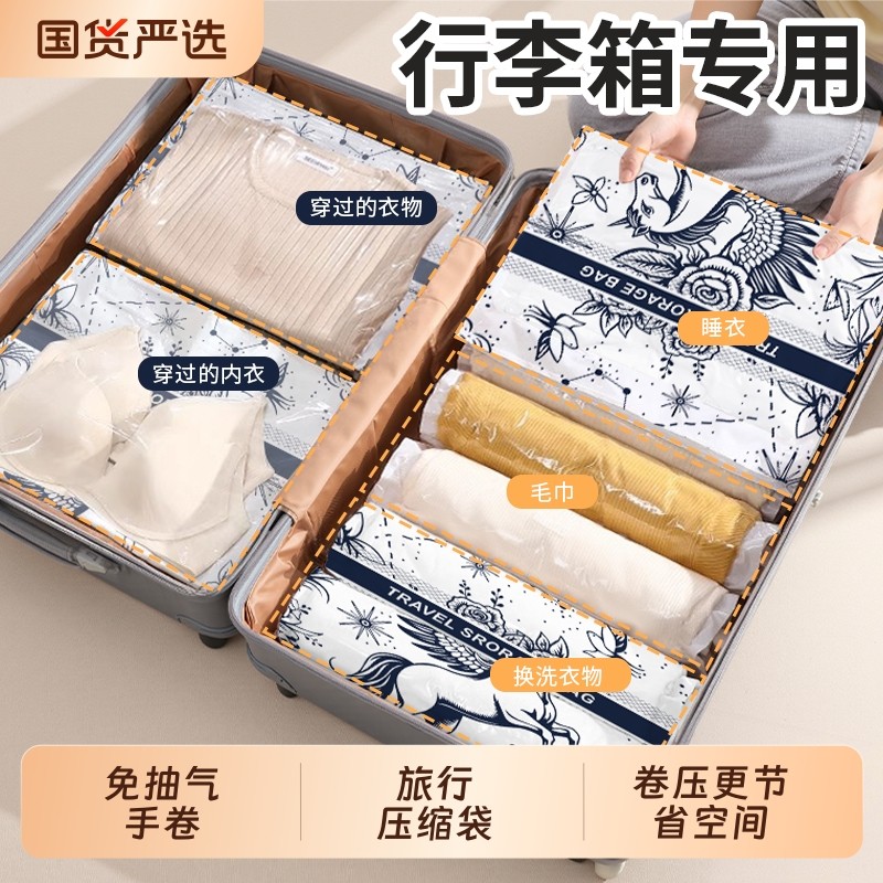 旅行真空压缩袋行李箱专用收纳整理衣物免抽气便携手卷密封打包袋