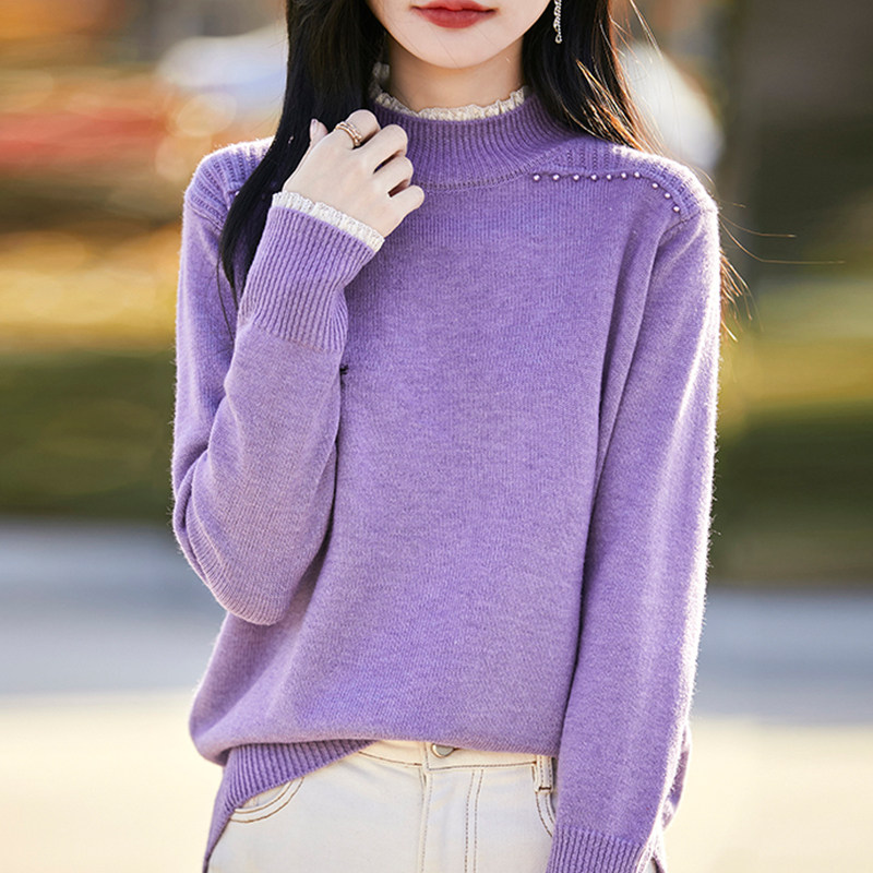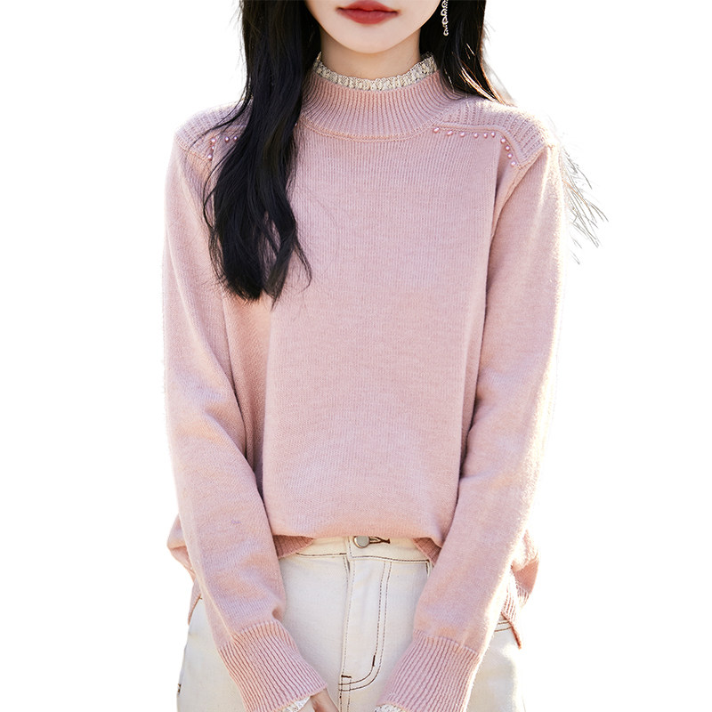 撤标撤柜(A)春秋款半高领钉珠针织打底衫女洋气内搭大码女装毛衣
