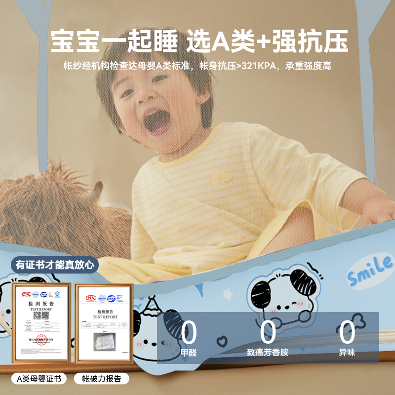 丸丫V2防摔蚊帐婴儿2025新款专用儿童纹帐家用卧室防掉床全底全罩