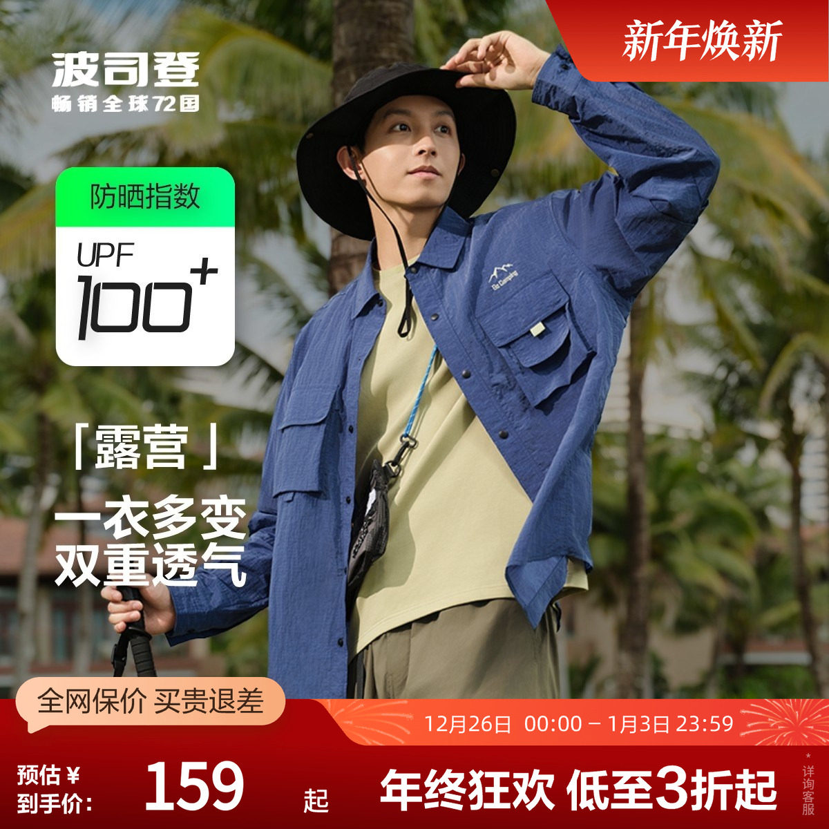 波司登奥莱夏季UPF100+户外露营凉感透气防晒衣骑行男垂钓