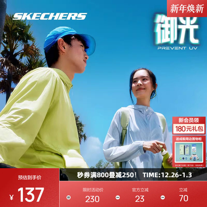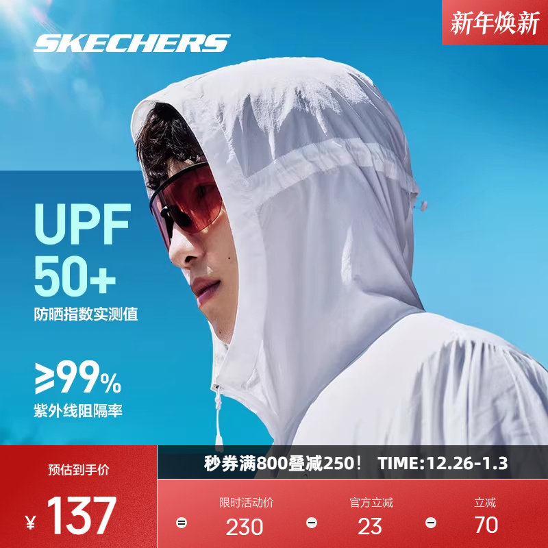 斯凯奇御光防晒衣男女同款凉感速干舒适运动户外透气连帽外套