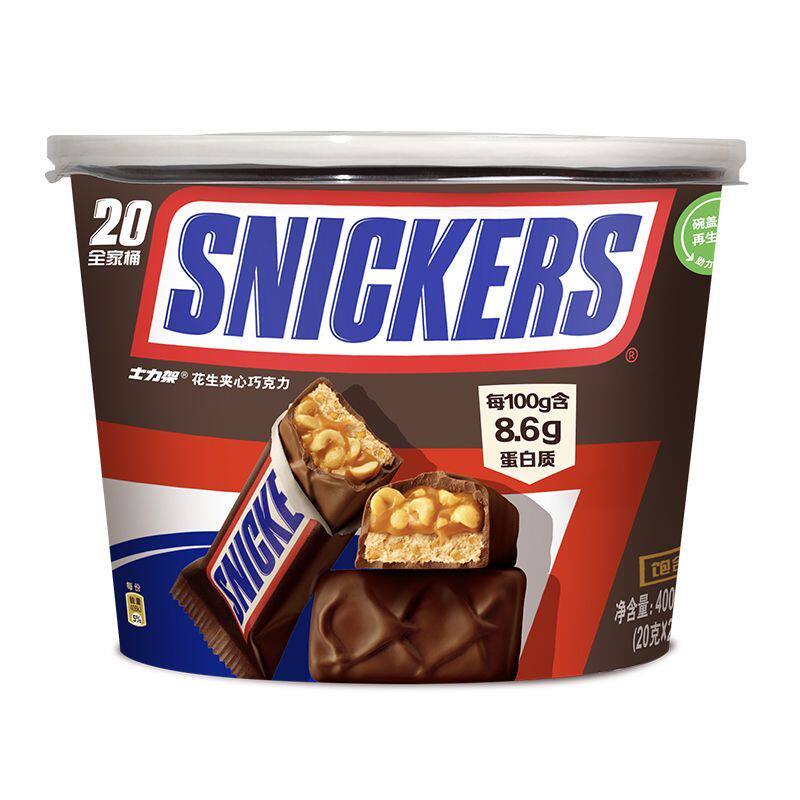 士力架花生夹心巧克力全家桶400g*3桶学习运动能量棒休闲零食糖果