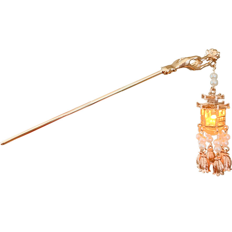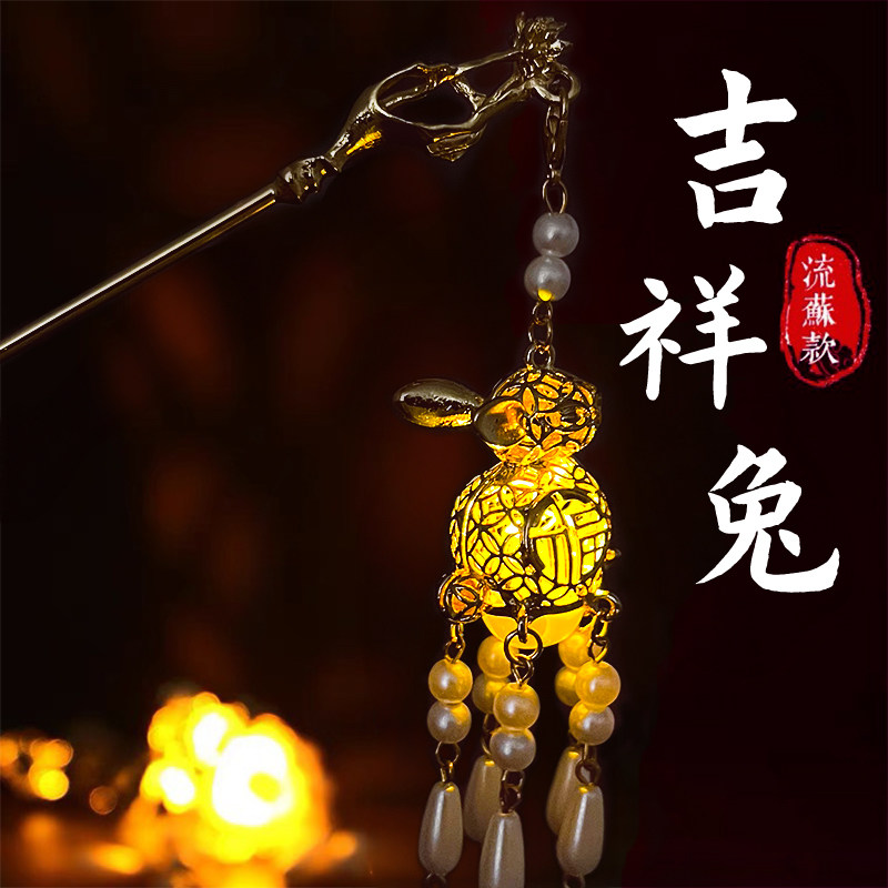 高级感古风发簪女款发光步摇发钗发饰金色宫灯后脑勺头簪簪子发饰
