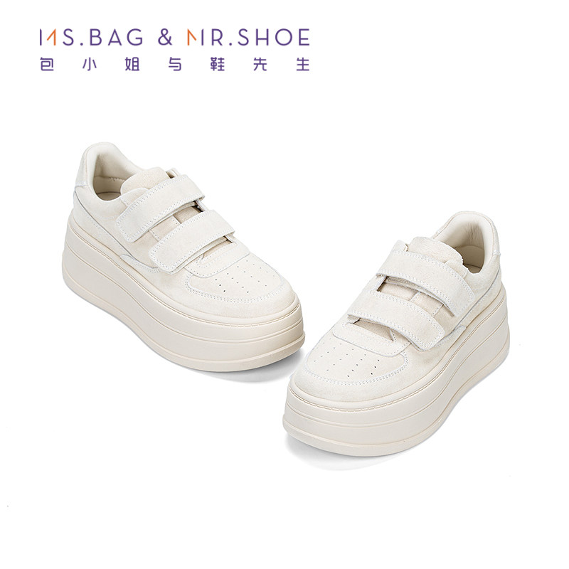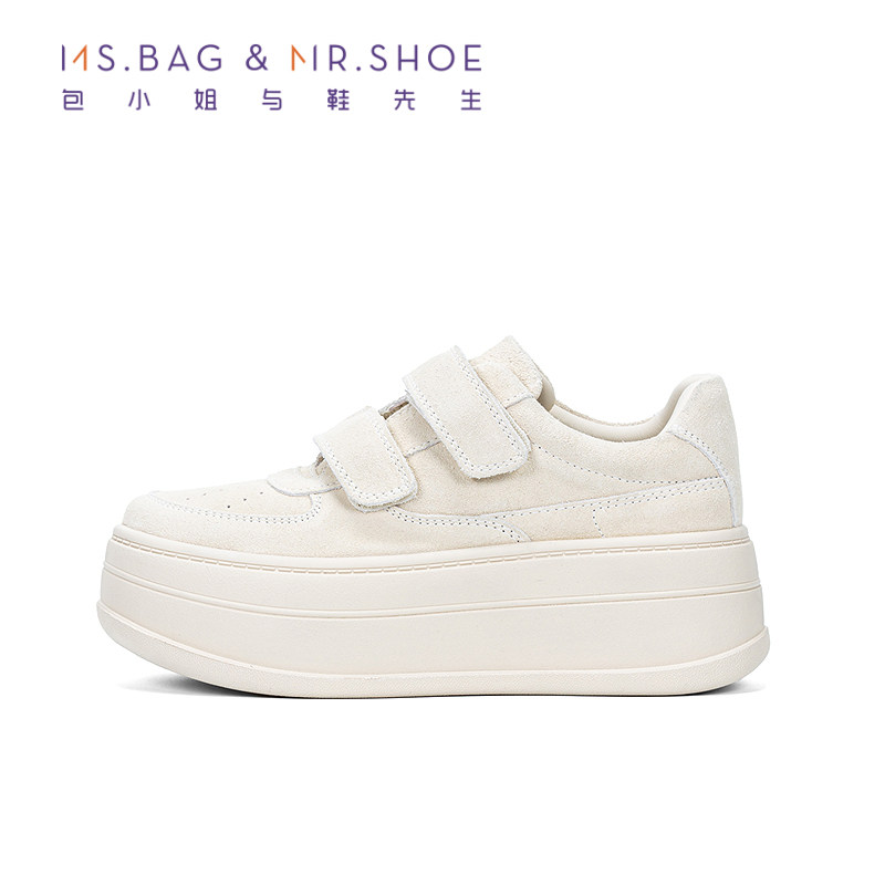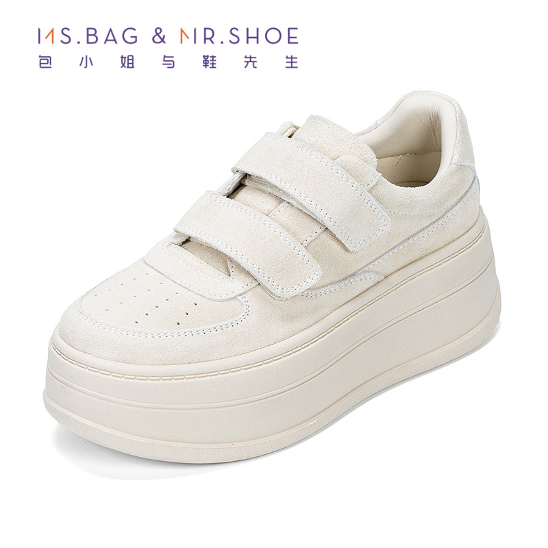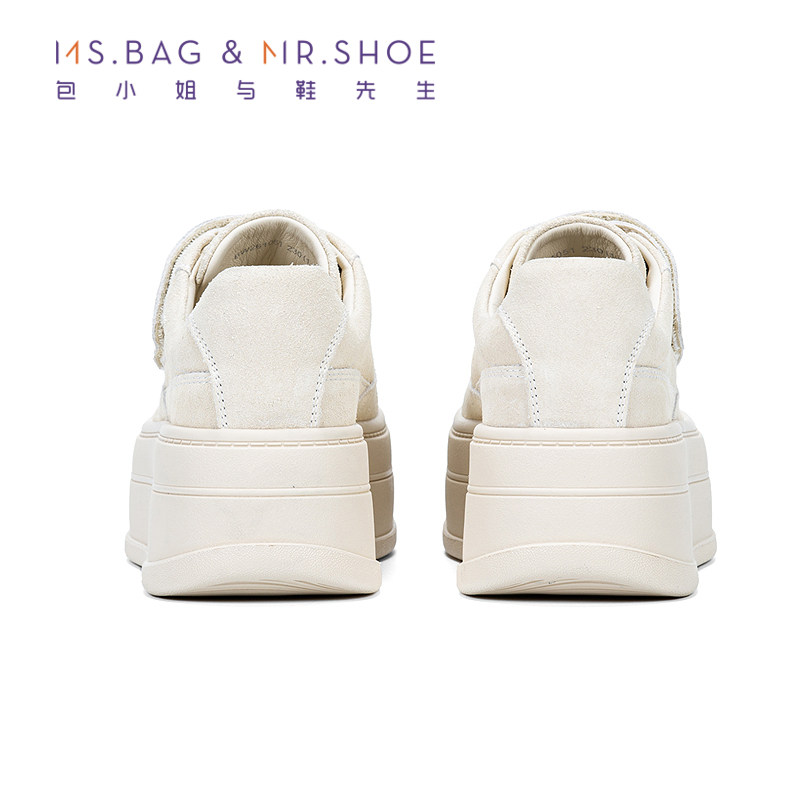 包小姐与鞋先生2026年春季新款古董白牛反绒厚底休闲板鞋女261051