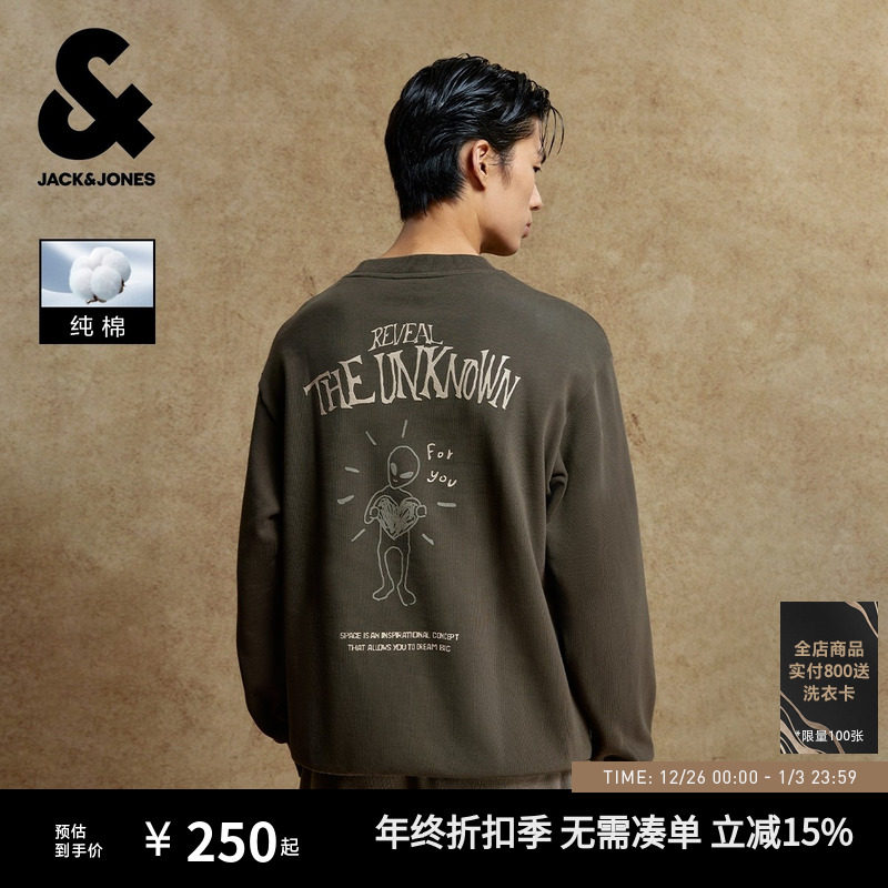 杰克琼斯男装2025年秋季新款宽松纯棉肌理印花卫衣外套圆领打底衫