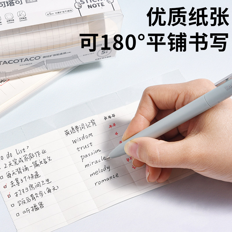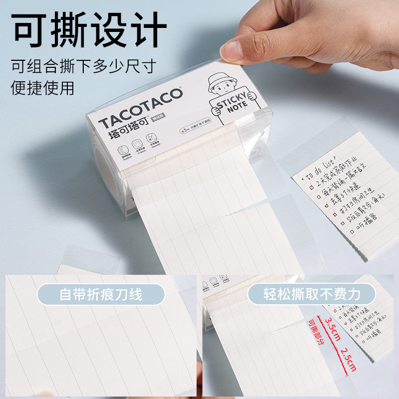 TACOTACO手撕无遮挡便利贴透明撕拉扩张贴任意贴抽拉式小学初中生办公有粘性无痕补充做笔记订正错题便签贴纸