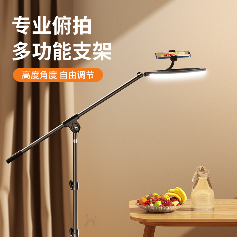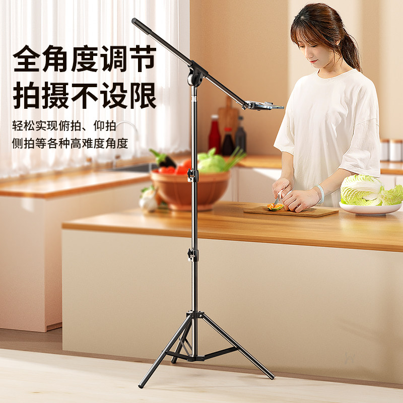 落地式三脚架直播专用手机支架静物美食对镜拍摄多功能支撑架俯拍拍照自拍补光灯拍视频神器通用三角架子