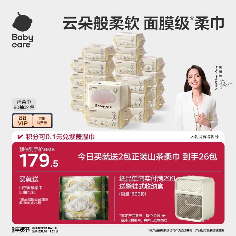 蓬松生活婴儿棉柔巾100抽壁挂式全棉洗脸巾一次性纯棉擦脸巾