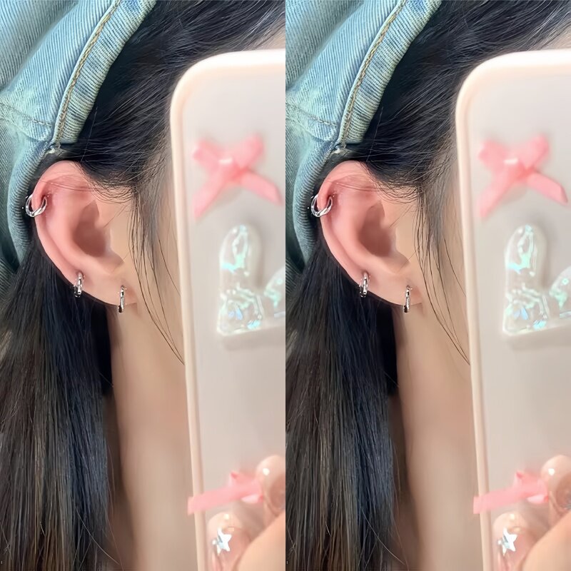 S999纯银耳环耳圈耳骨钉养耳洞耳骨环高级感素圈耳扣耳钉女耳饰男