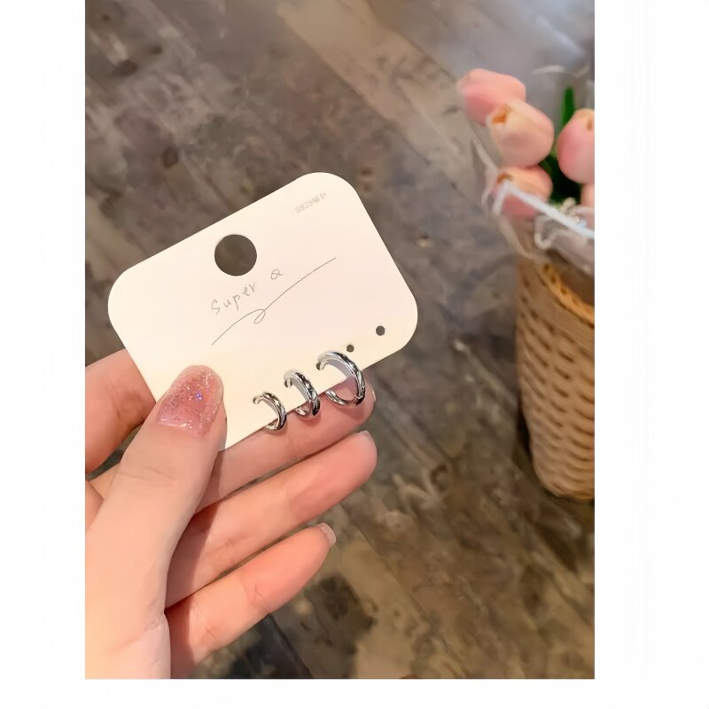 银色简约高级感素圈耳环女2025新款耳圈气质耳饰轻奢耳钉圈圈耳扣