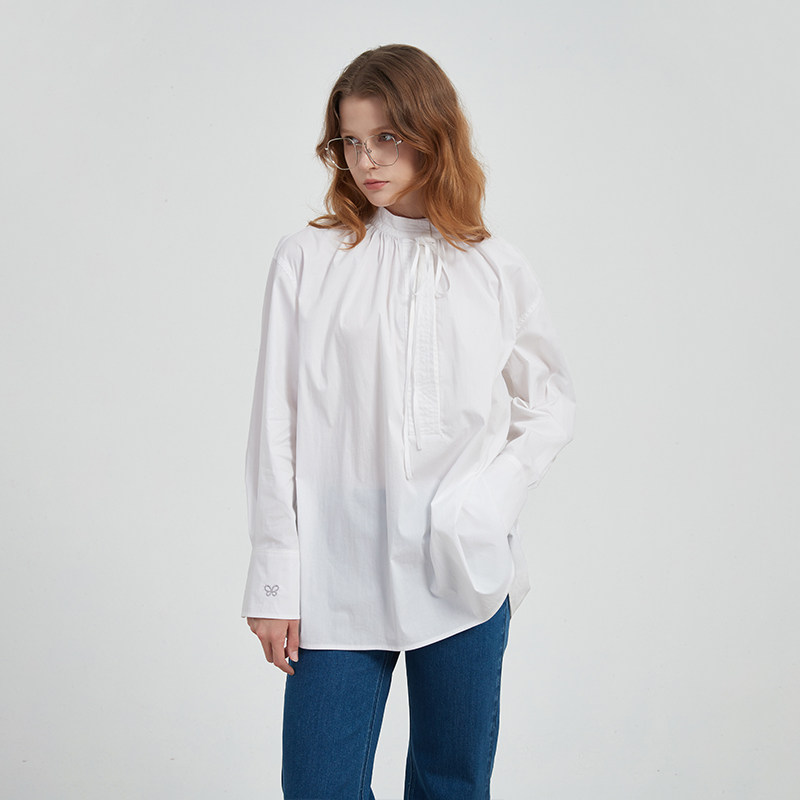 Petit Bari法式小立领设计感系带长袖衬衫女 秋冬 气质简约纯色