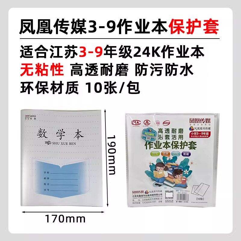 江苏凤凰本子皮作业本书套本子皮包书皮透明小学生一二三四年级下册加厚书膜书皮纸全套书本课本书壳保护套
