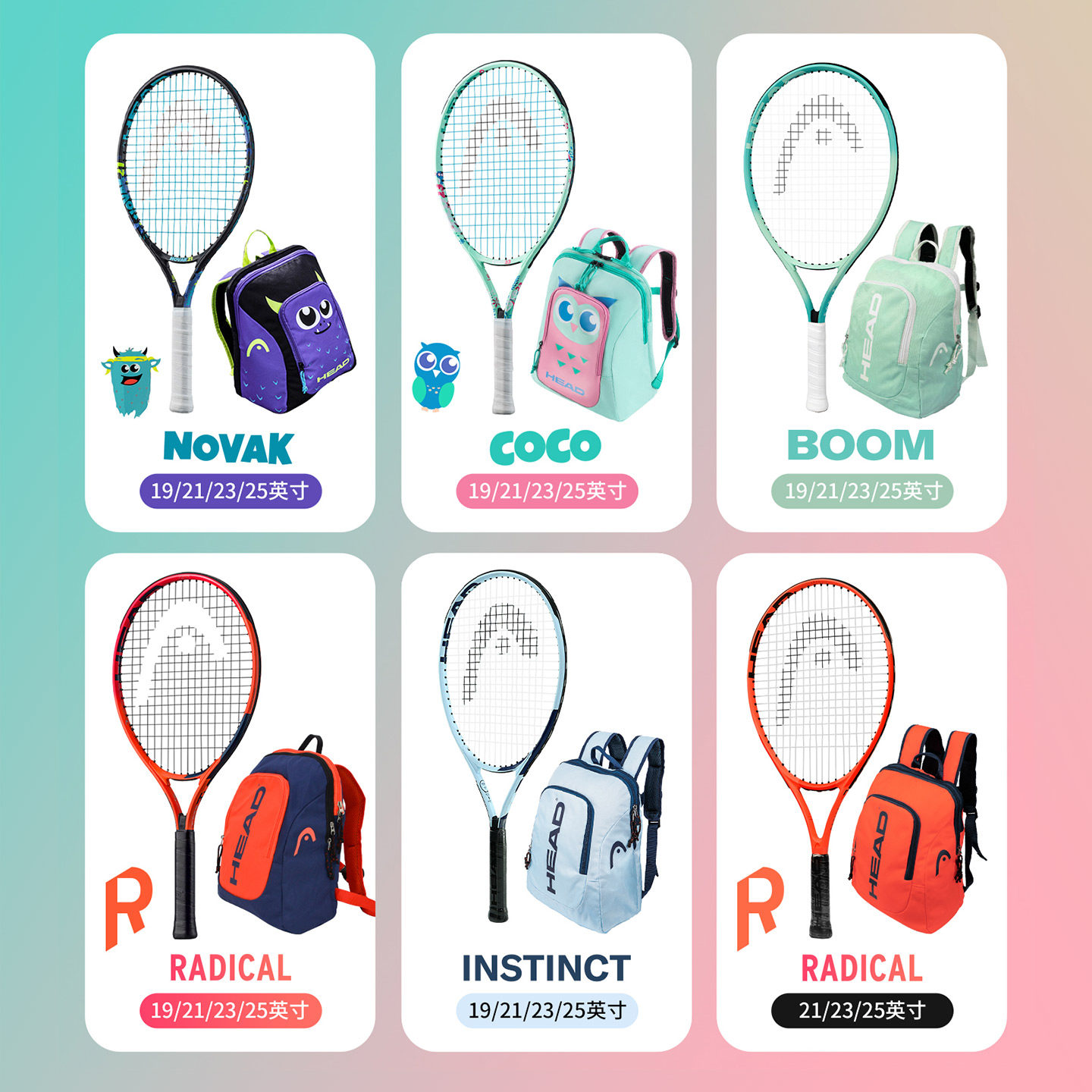 head海德儿童网球拍青少年小学生专用21/23/25寸初学者6岁2-12岁