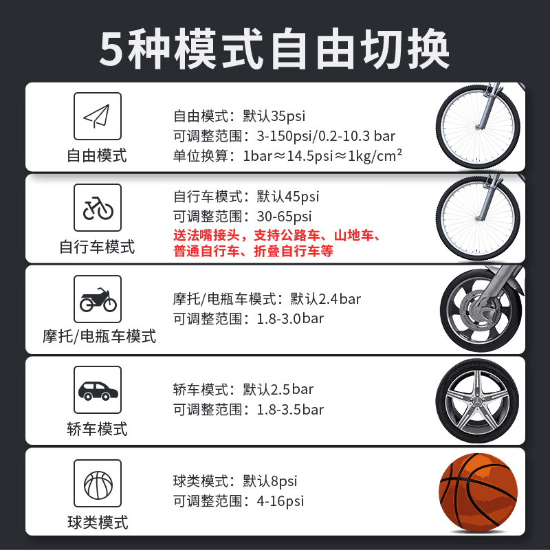 自行车打气筒电动便携快速冲气家用通用公路山地车小型车载充气泵