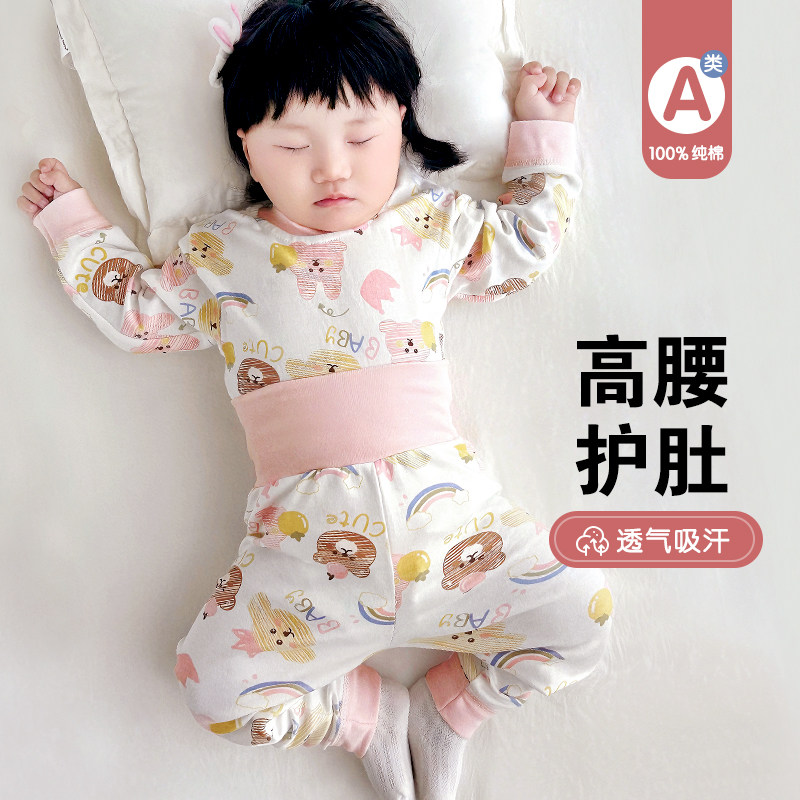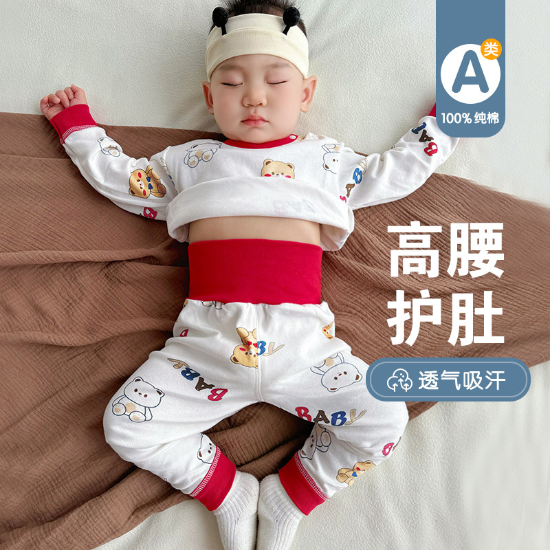 婴儿秋衣套装全棉高腰护肚秋裤男女宝宝分体睡衣纯棉儿童保暖内衣
