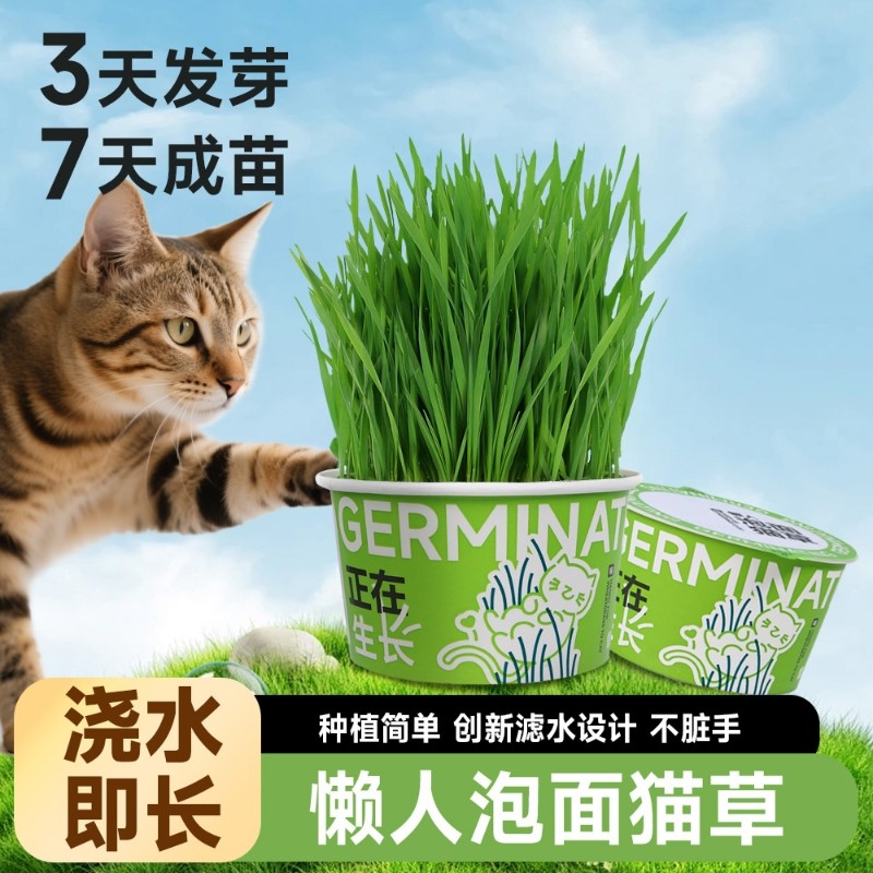猫草盆栽懒人泡面猫草水培杯猫咪天然化毛草自种猫草助排毛猫零食