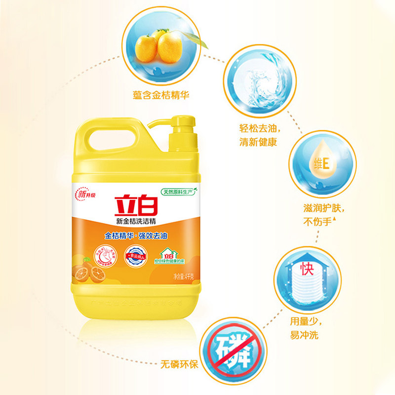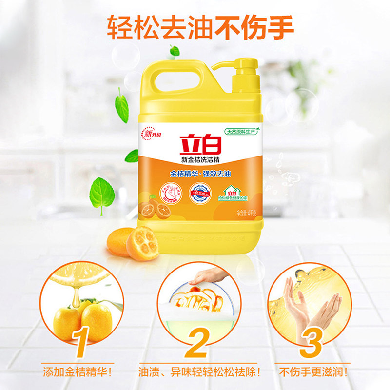 立白新金桔洗洁精大桶装厨房家用食品用去油腻不伤手正品按压式