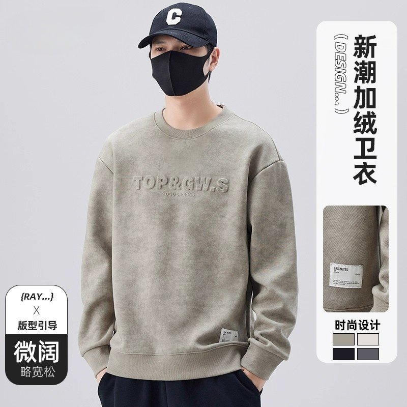 361运动卫衣男2025秋冬圆领男士加绒套头衫男装长袖男生运动服