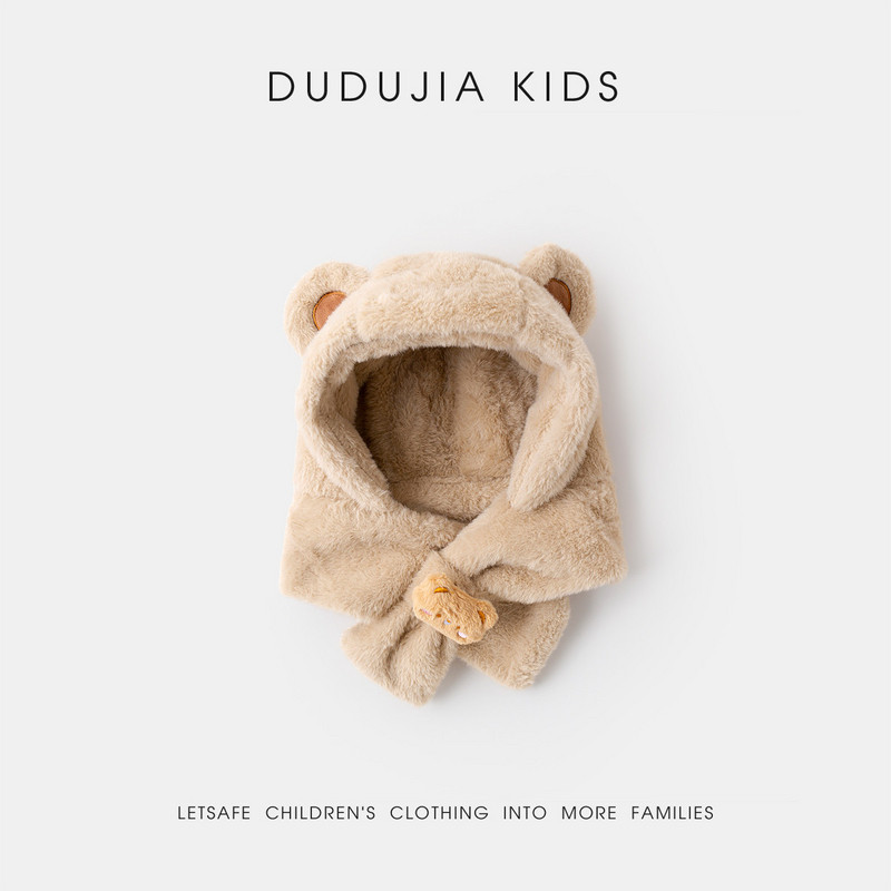 尼多熊儿童帽子围巾一体冬季防风帽宝宝毛绒护耳帽女童加厚保暖帽
