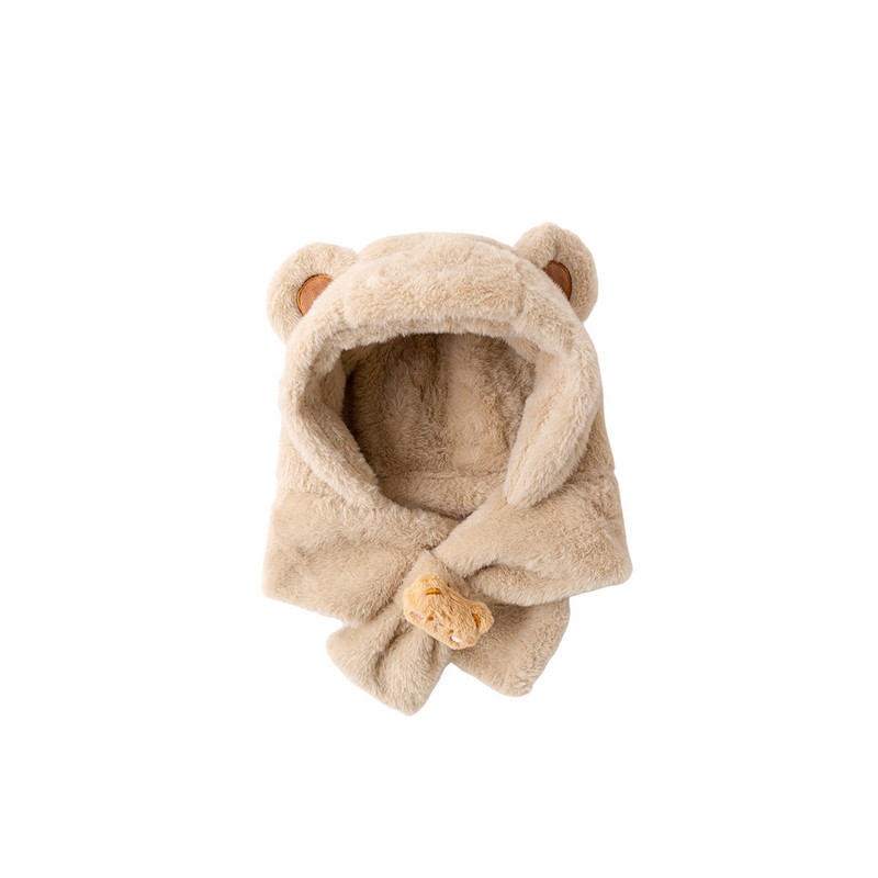 尼多熊婴儿帽子秋围脖一体宝宝毛绒帽防风护耳帽冬季保暖婴幼儿帽