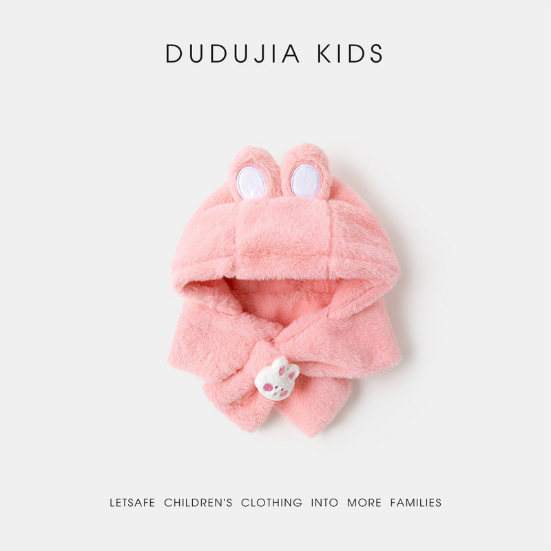 儿童冬季帽子围脖一体帽两件套婴儿可爱毛绒男女童宝宝保暖护耳厚