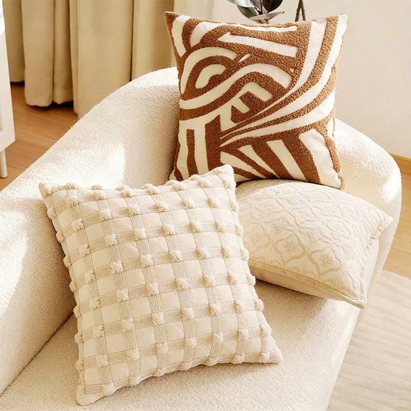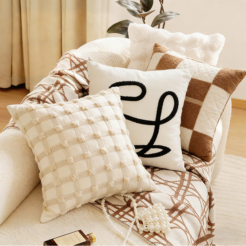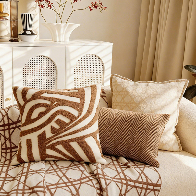 奶油色高级感复古风打结抱枕套沙发床上棕色现代简约客厅沙发靠垫