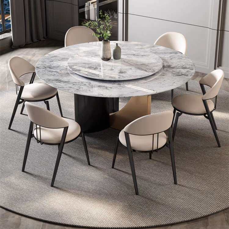 2024新款意式现代大理石圆餐桌家用奢石微晶石天然超晶石餐桌餐台
