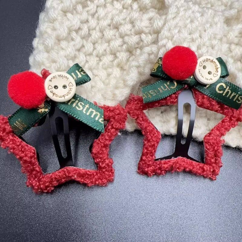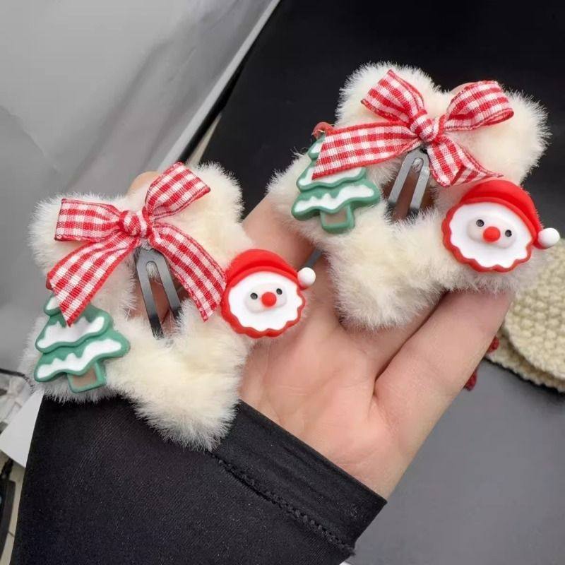 圣诞发饰头饰毛绒发夹女秋冬季侧边夹刘海夹2025新款发卡夹子节日