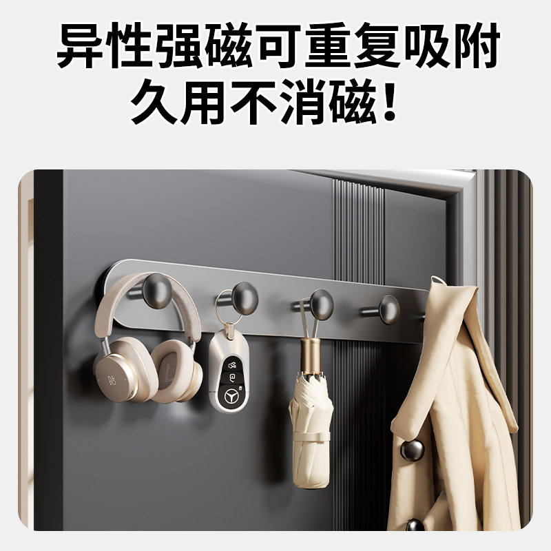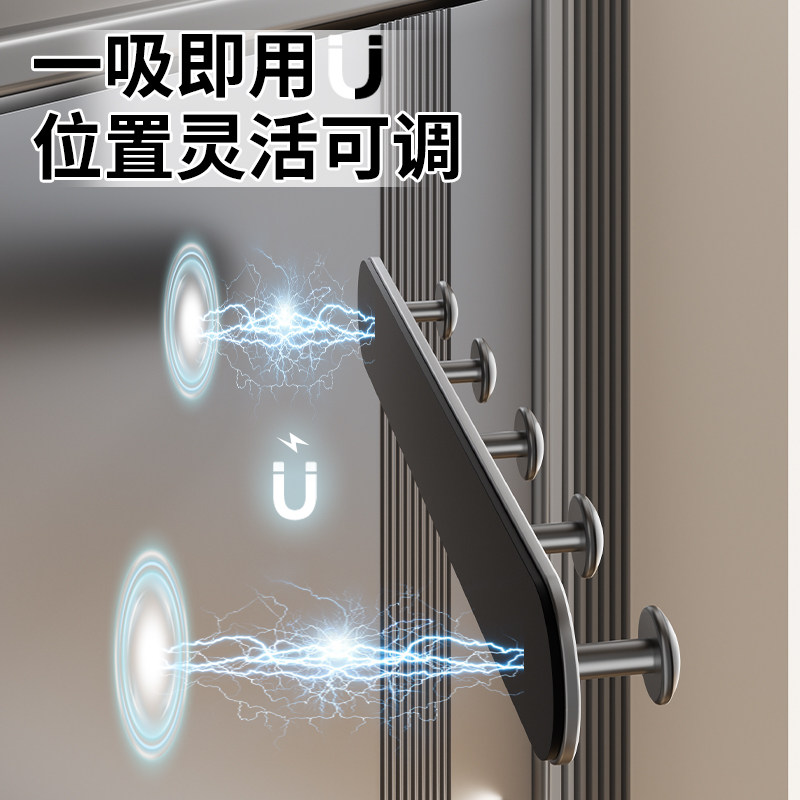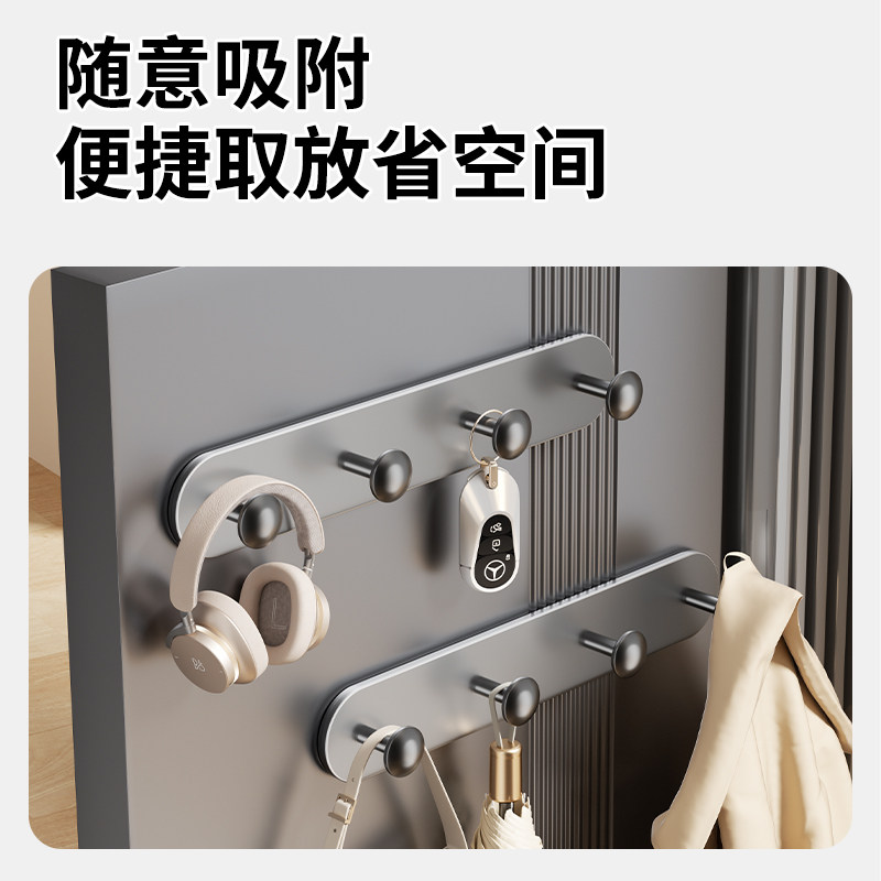 免打孔入户门后钥匙收纳挂钩厨房壁挂冰箱磁吸粘钩排钩透明墙面