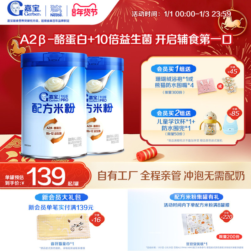 【甄选A2β-酪蛋白】嘉宝配方米粉高蛋白益生菌高铁婴儿米粉2罐
