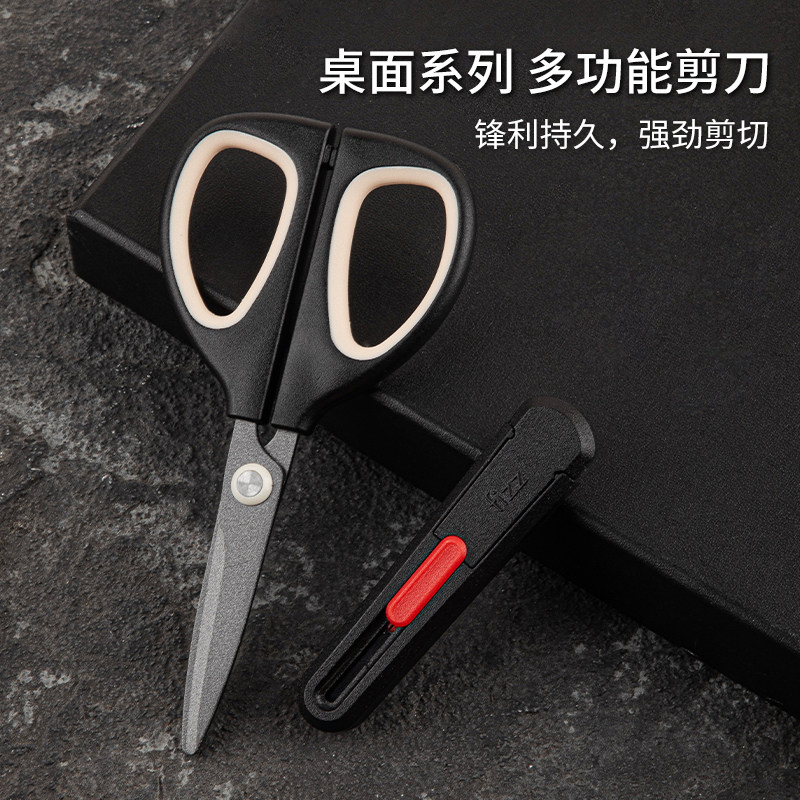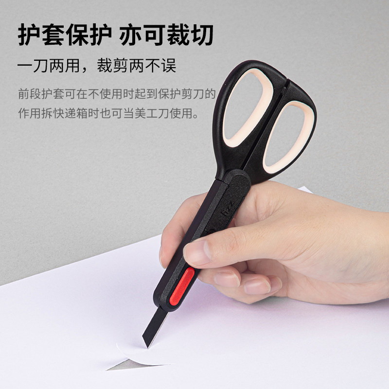 广博fizz二合一剪刀家用不粘胶剪刀特氟龙圆头剪刀刻刀二合一剪子手工儿童剪刀特富龙多功能剪子带开箱刀子