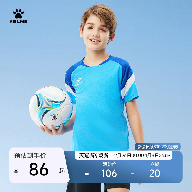 KELME卡尔美儿童训练服定制球衣 小学生足球运动比赛短袖男童T恤