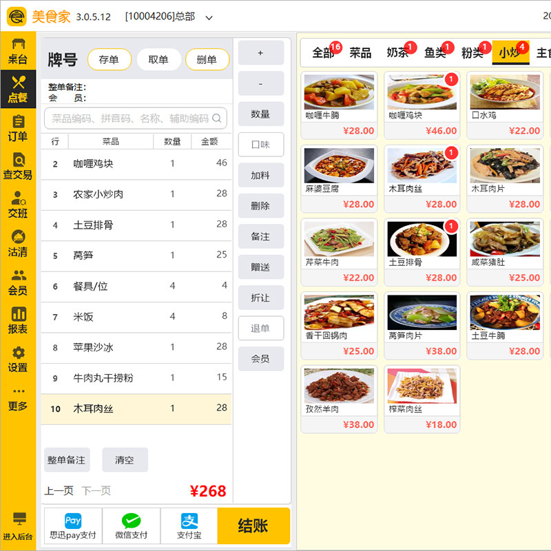 思迅美食家3云餐饮管理系统奶茶小吃面馆西餐甜品店收银系统软件