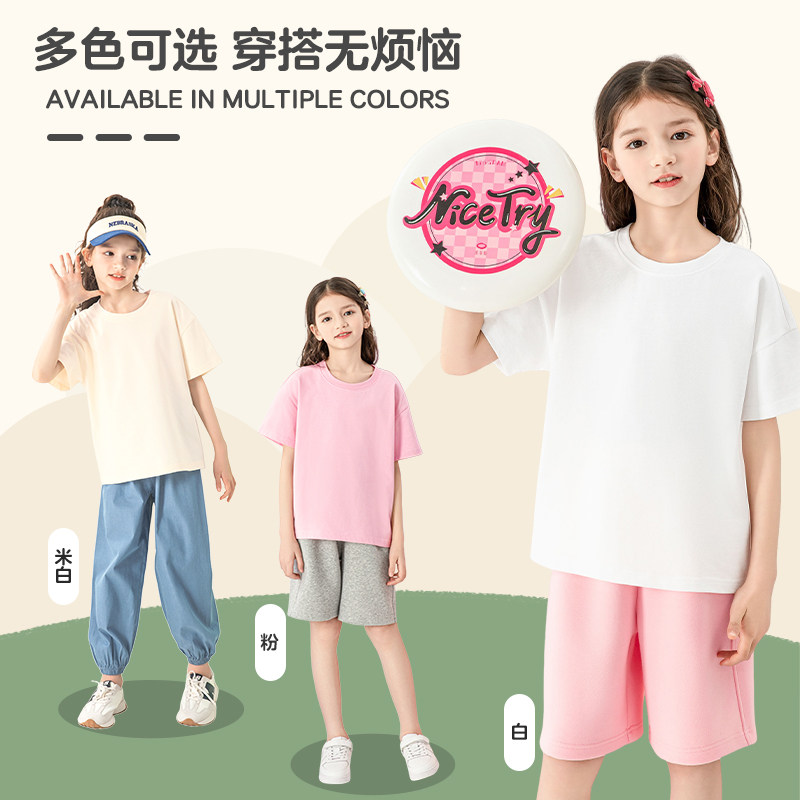 真维斯童装女童短袖t恤2025新款男童夏季纯棉半袖儿童纯色上衣女