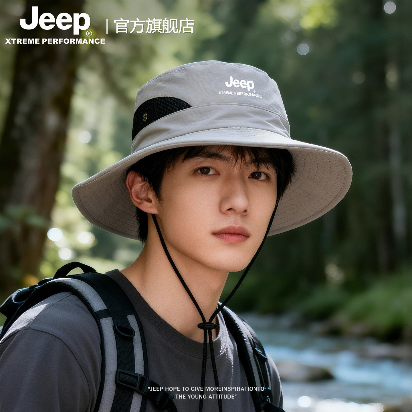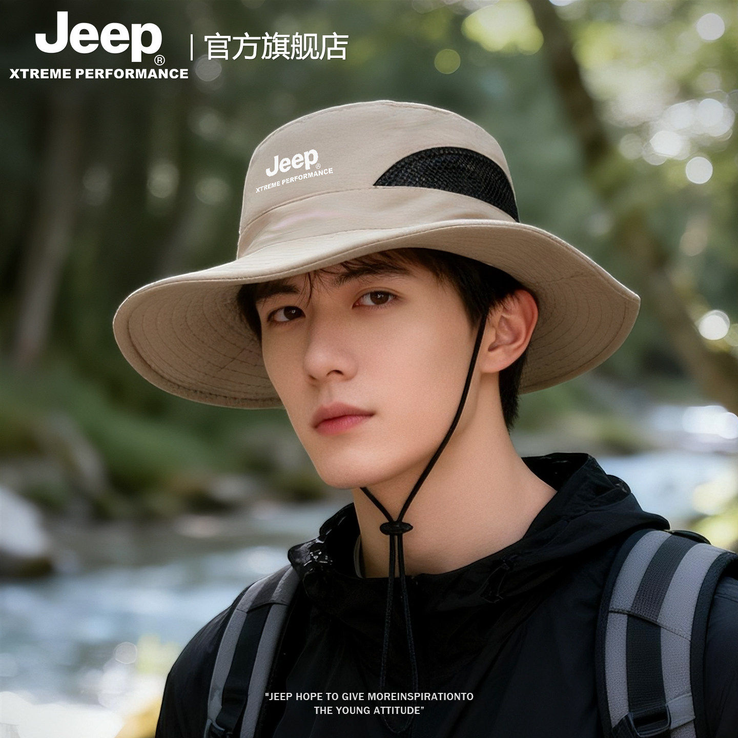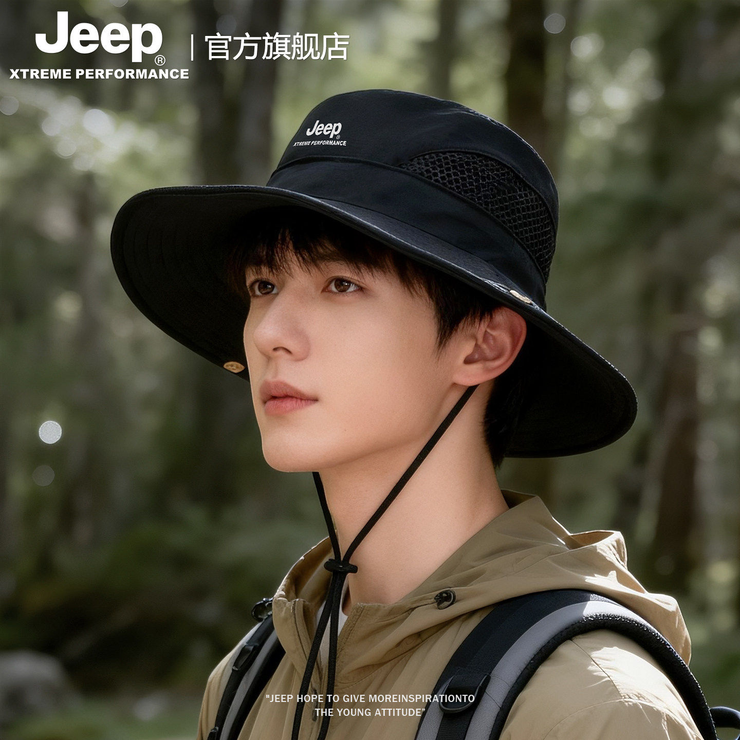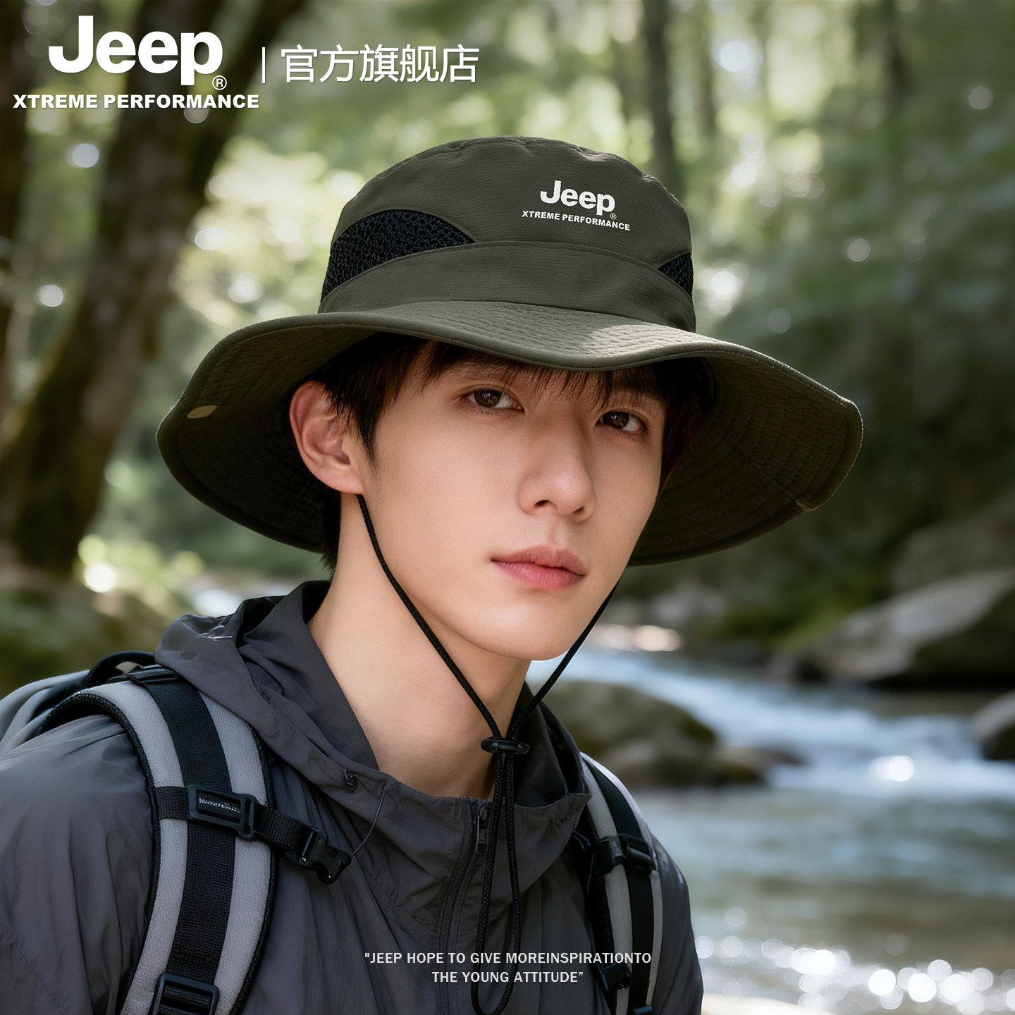 jeep吉普夏季男士钓鱼太阳帽子户外登山徒步透气遮阳防晒渔夫帽男