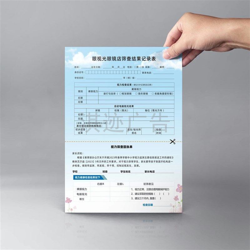 视力调研表学生筛查调查单视觉中心健康检查屈光发育档案服务中心