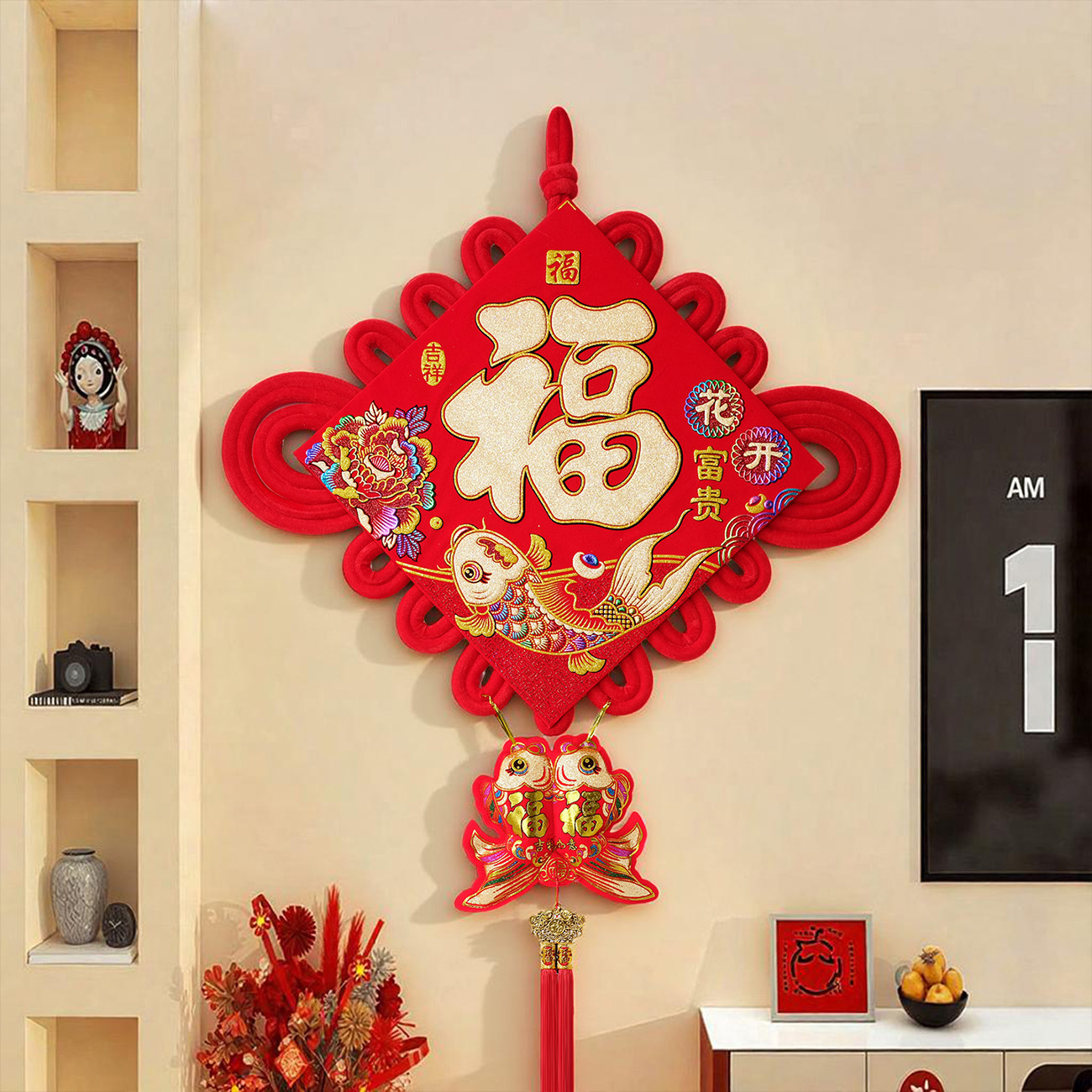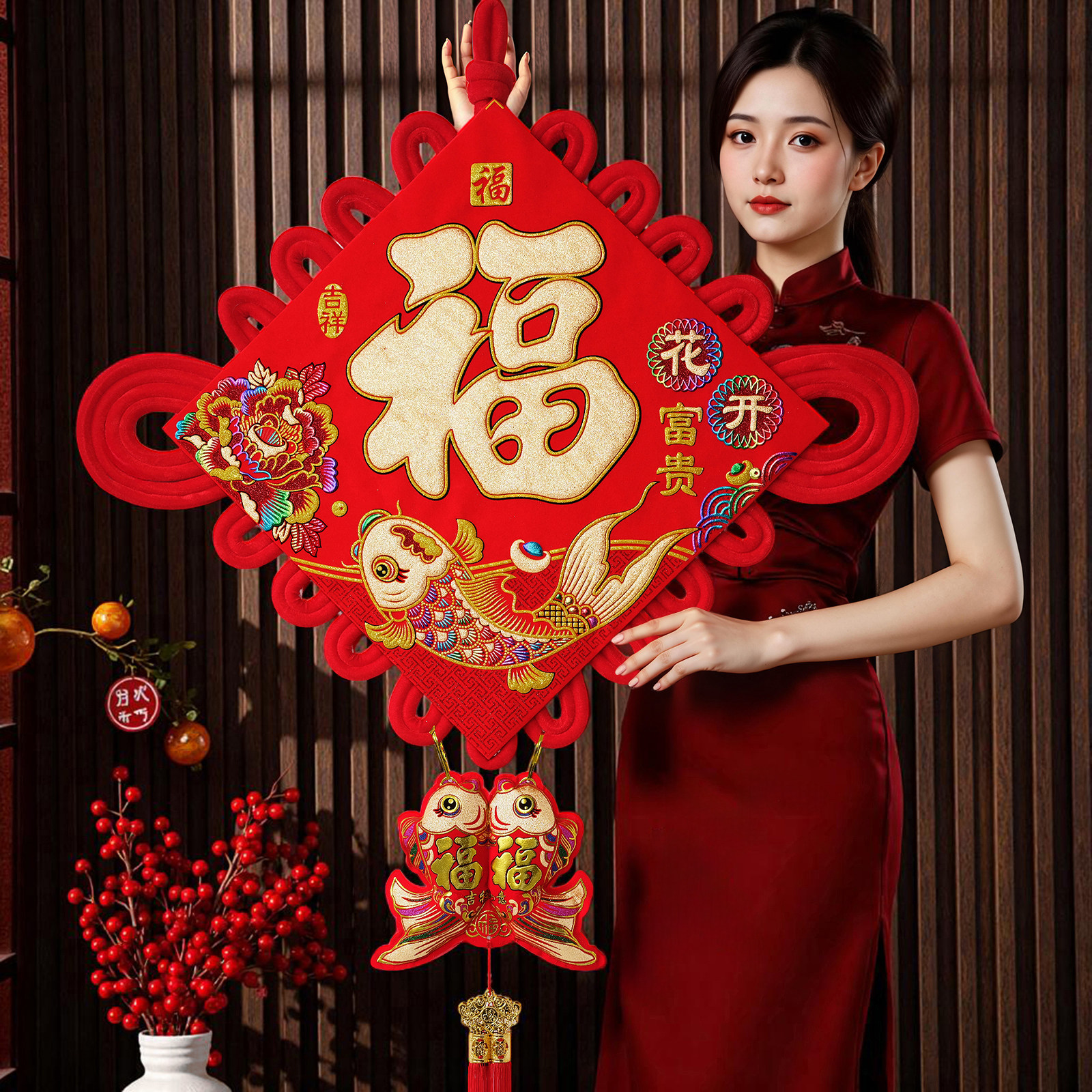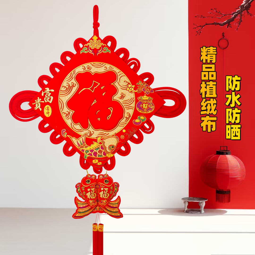 绒布新款福字中国结挂件装饰品乔迁入户门上客厅大号墙壁玄关精品