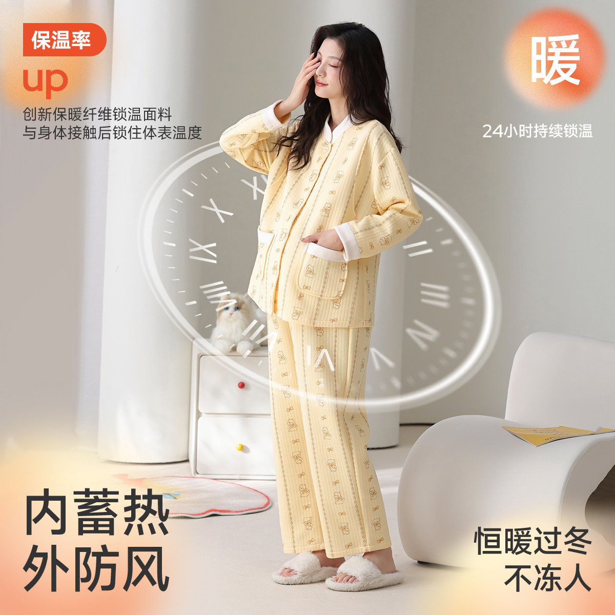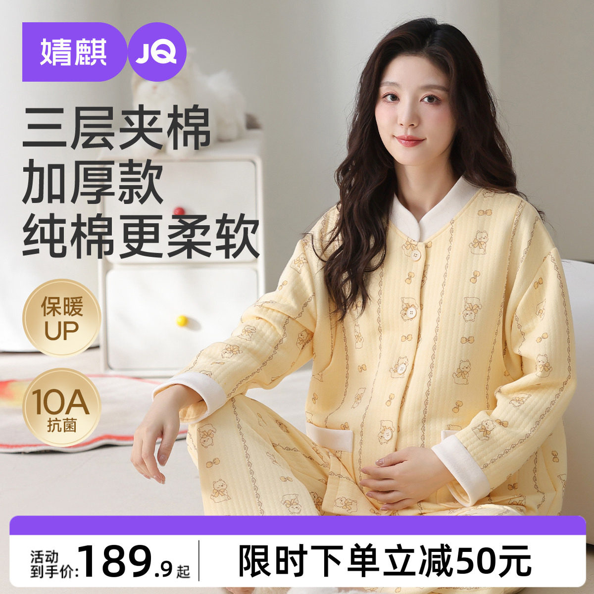 婧麒月子服孕妇冬季产后空气棉哺乳睡衣待产怀孕期家居服喂奶套装