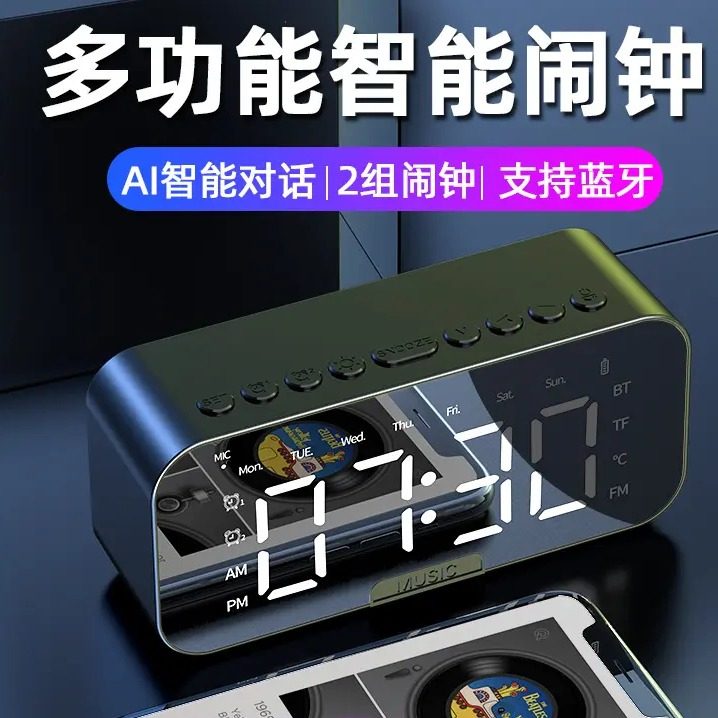 小音箱蓝牙无线定制LOGO插卡音乐闹钟镜面数显便携式无线蓝牙音响