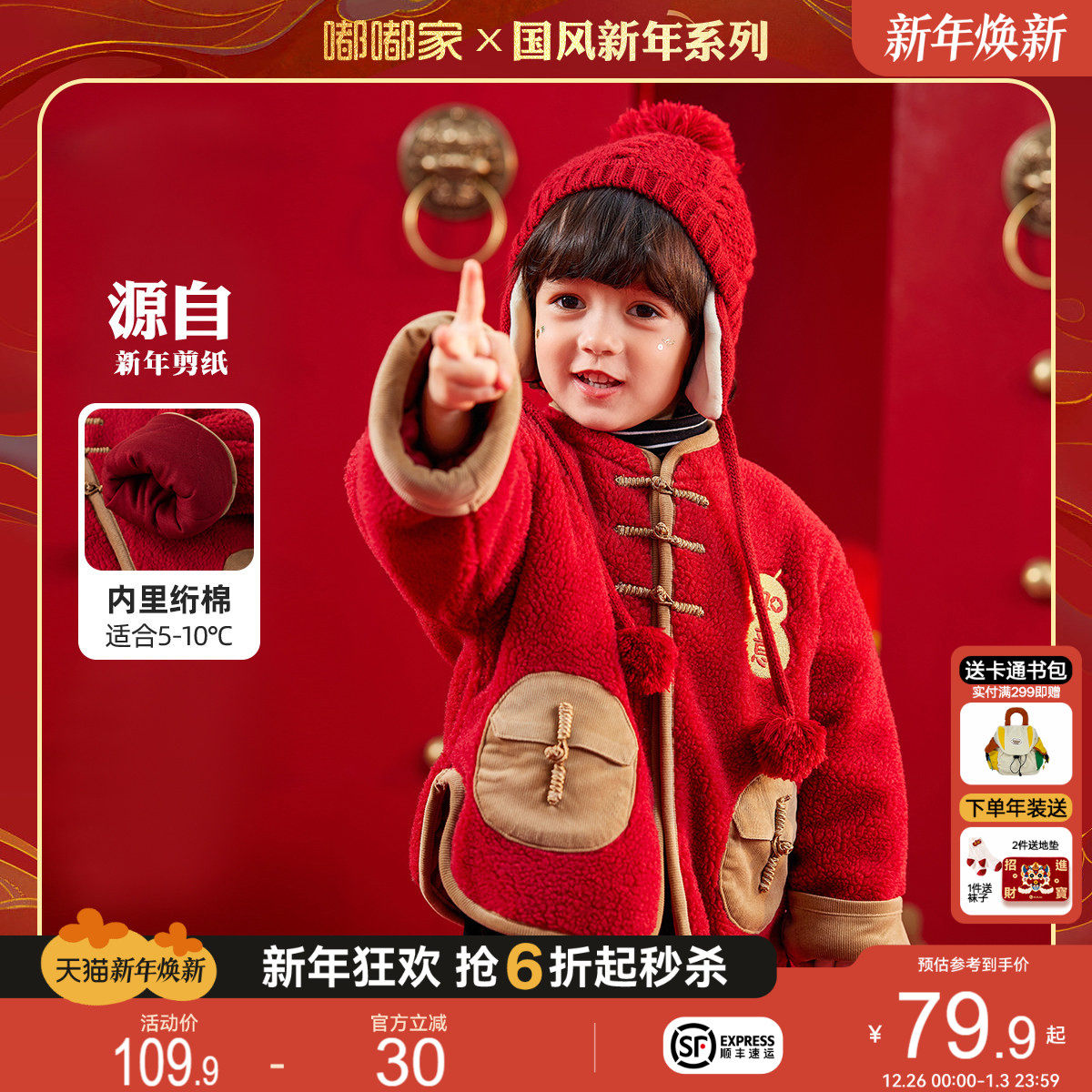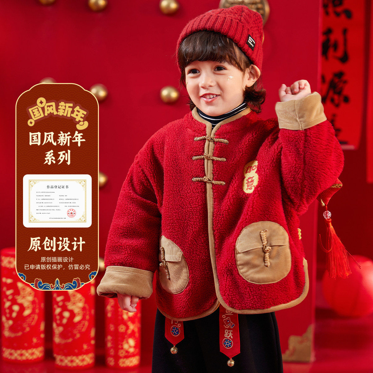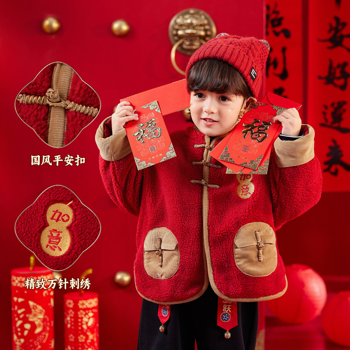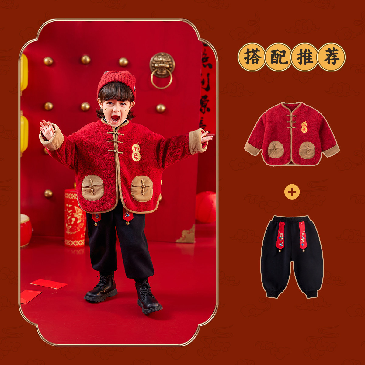 嘟嘟家宝宝中式拜年服冬级男童唐装外套儿童红色过年服女童礼服潮
