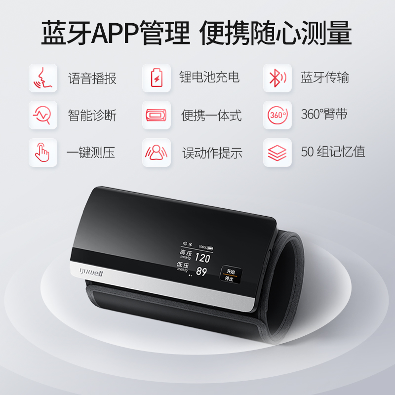 鱼跃电子血压测量仪家用高精准血压计老人630CR蓝牙一体机充电款